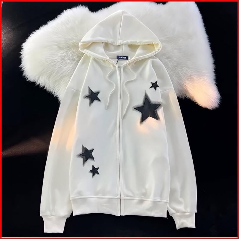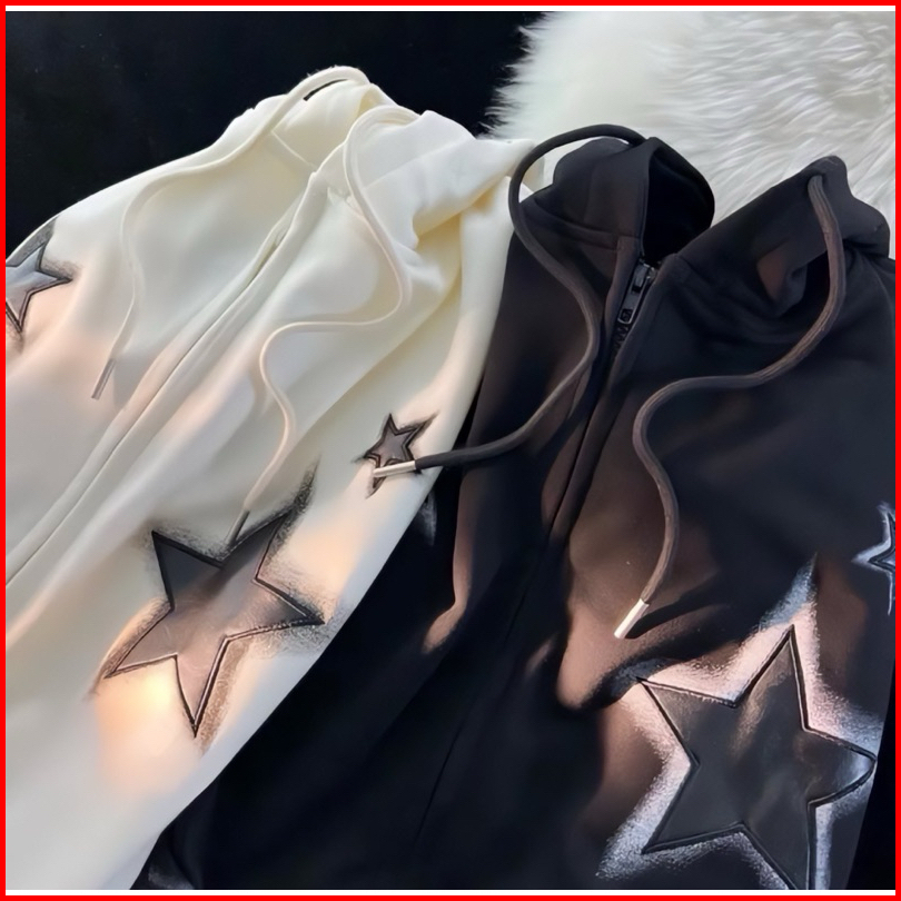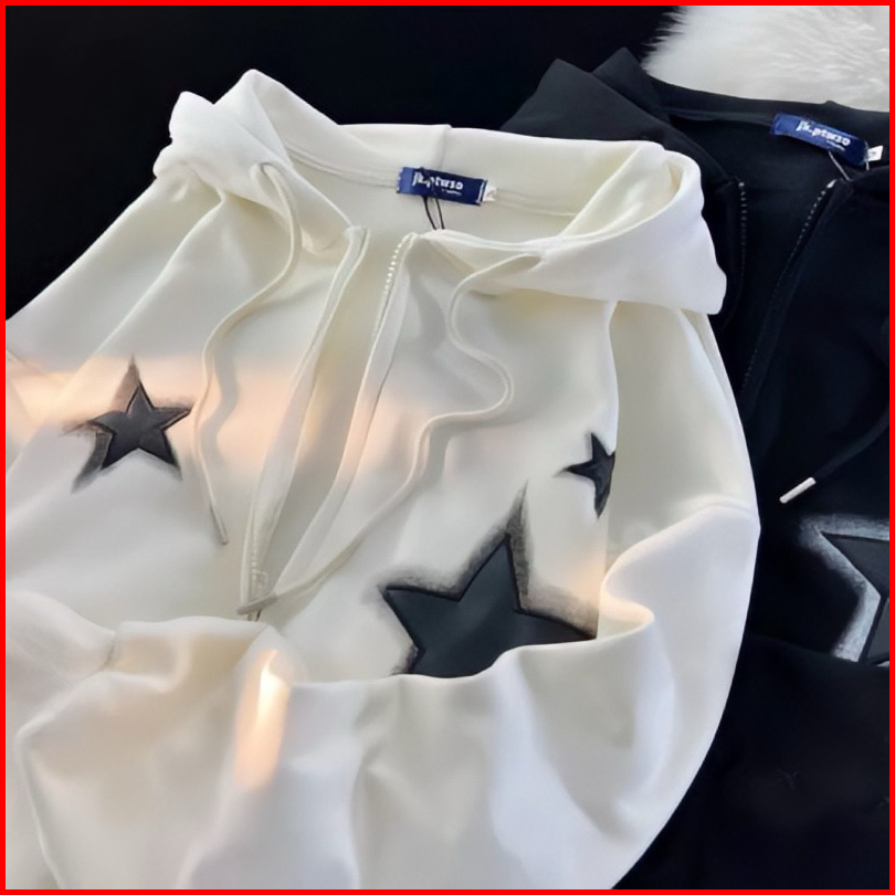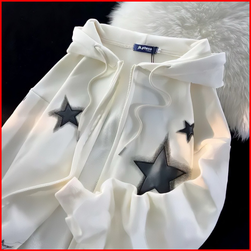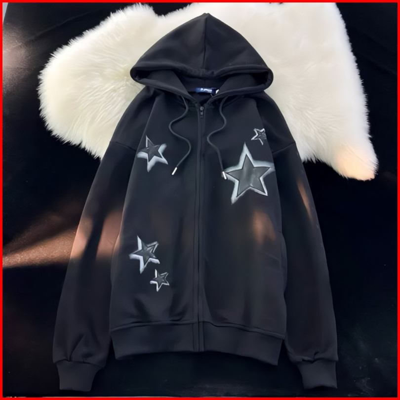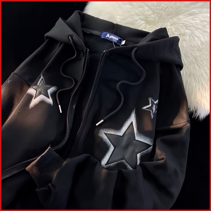 Zipper Black Star Jaket Hoodie Sweater Sweatshirt Pria Wanita Jumbo Bigsize Oversize Unisex