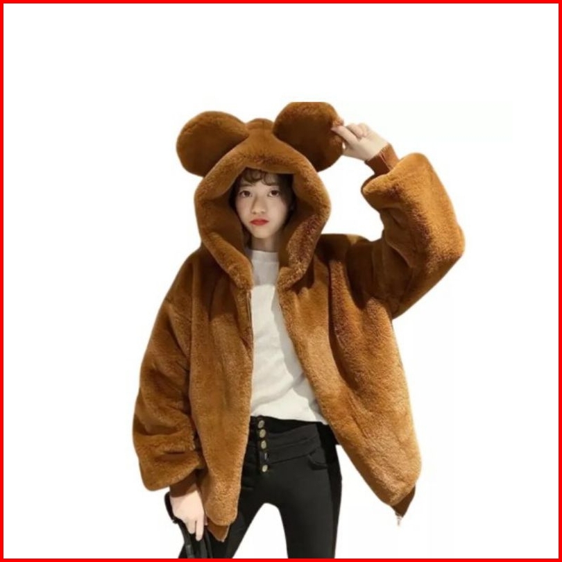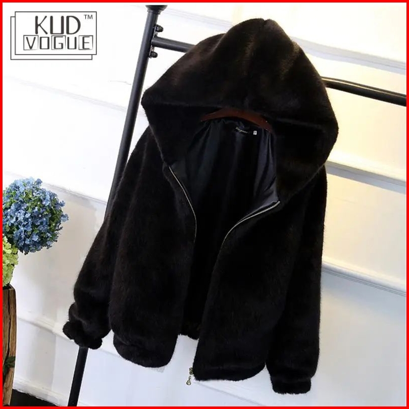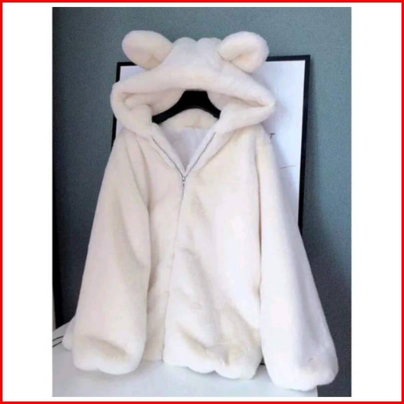 Jaket Bulu Hoddie Kelinci Lembut Jaket Bulu Wanita