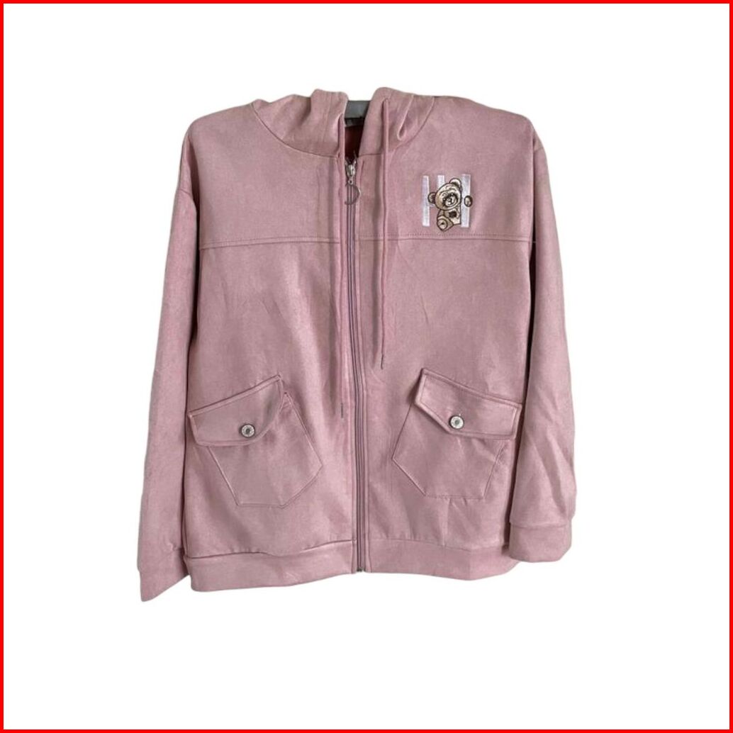 Jaket Hoodie Zipper Wanita Premium Suede Allsize - Hi