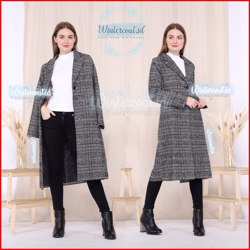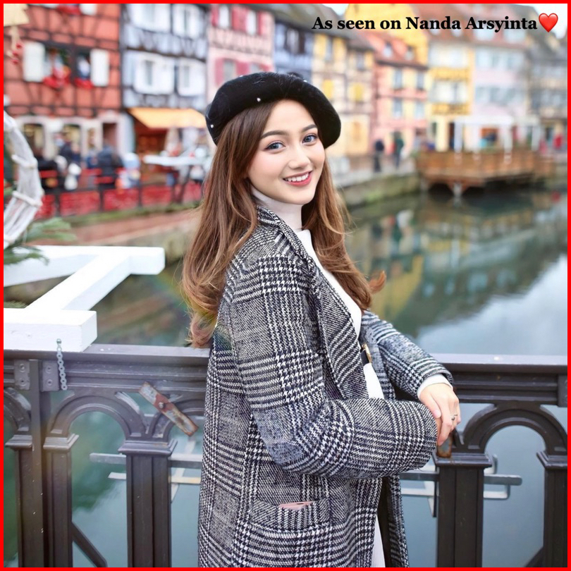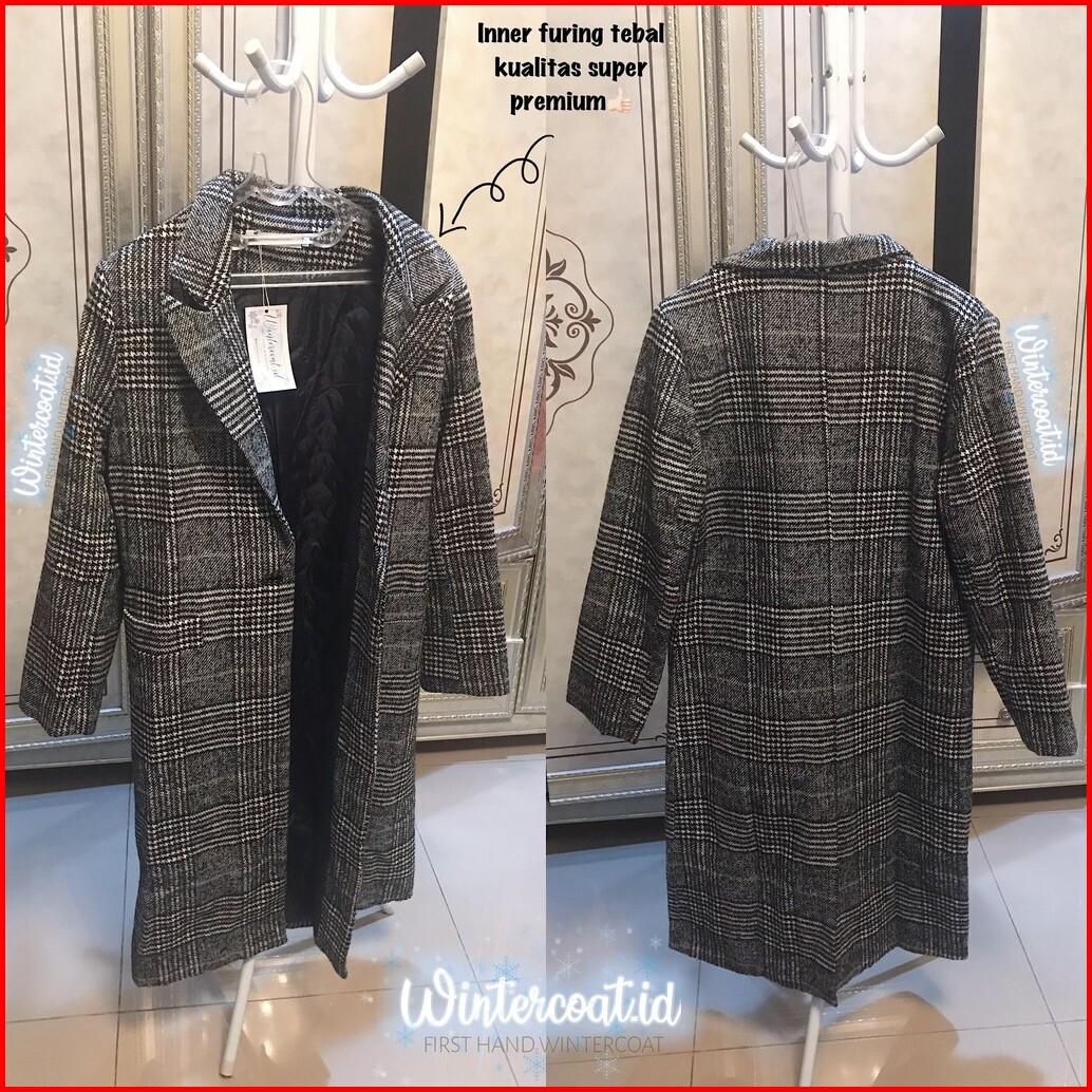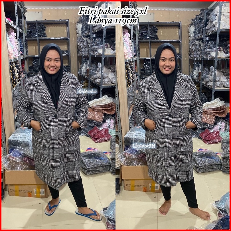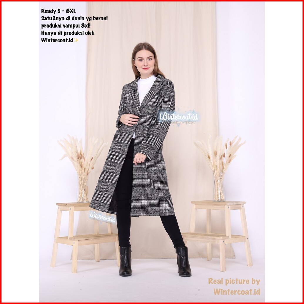 S-8xl Long Wool Coat Wanita Jaket Winter Cewek Jumbo Plaid Mantel Women Panjang Korea Big Size