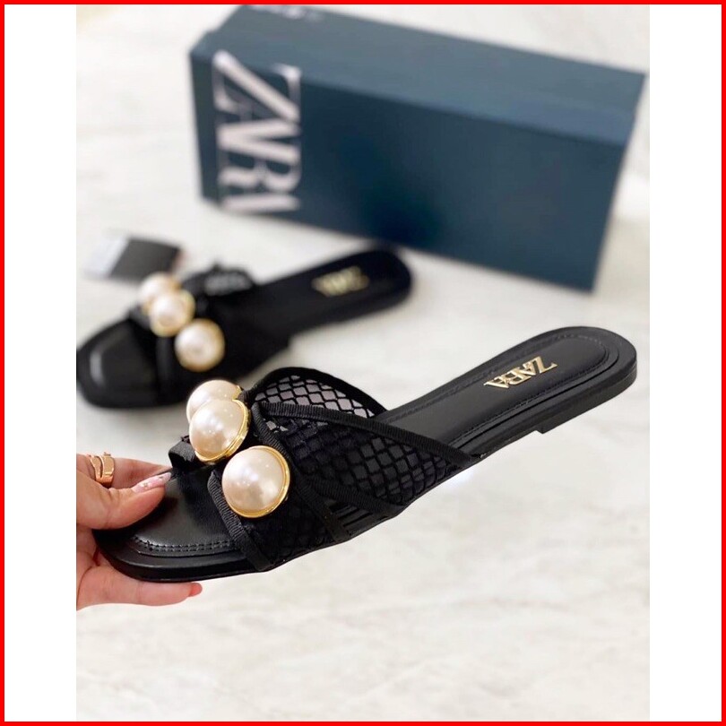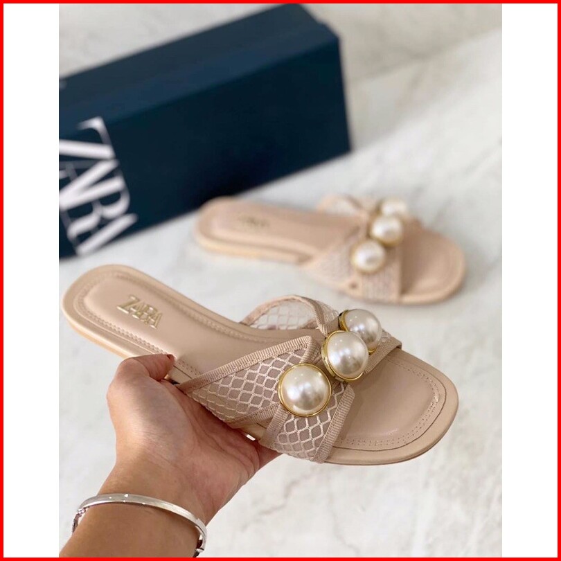 Sandal Wanita Zs303 Pearl Mesh Slide Sandals