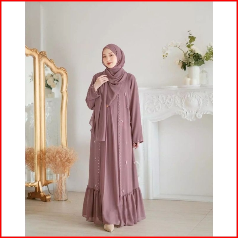 Abaya Syahira Gamis Wanita Dewasa Bahan Ceruty Babydoll Dengan Aplikasi Payet Mutiara Gamis Simple Mewah Elegan