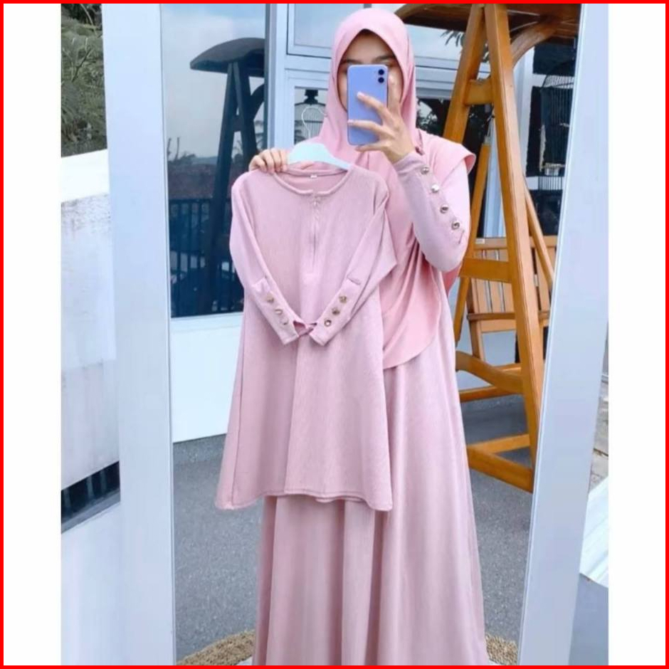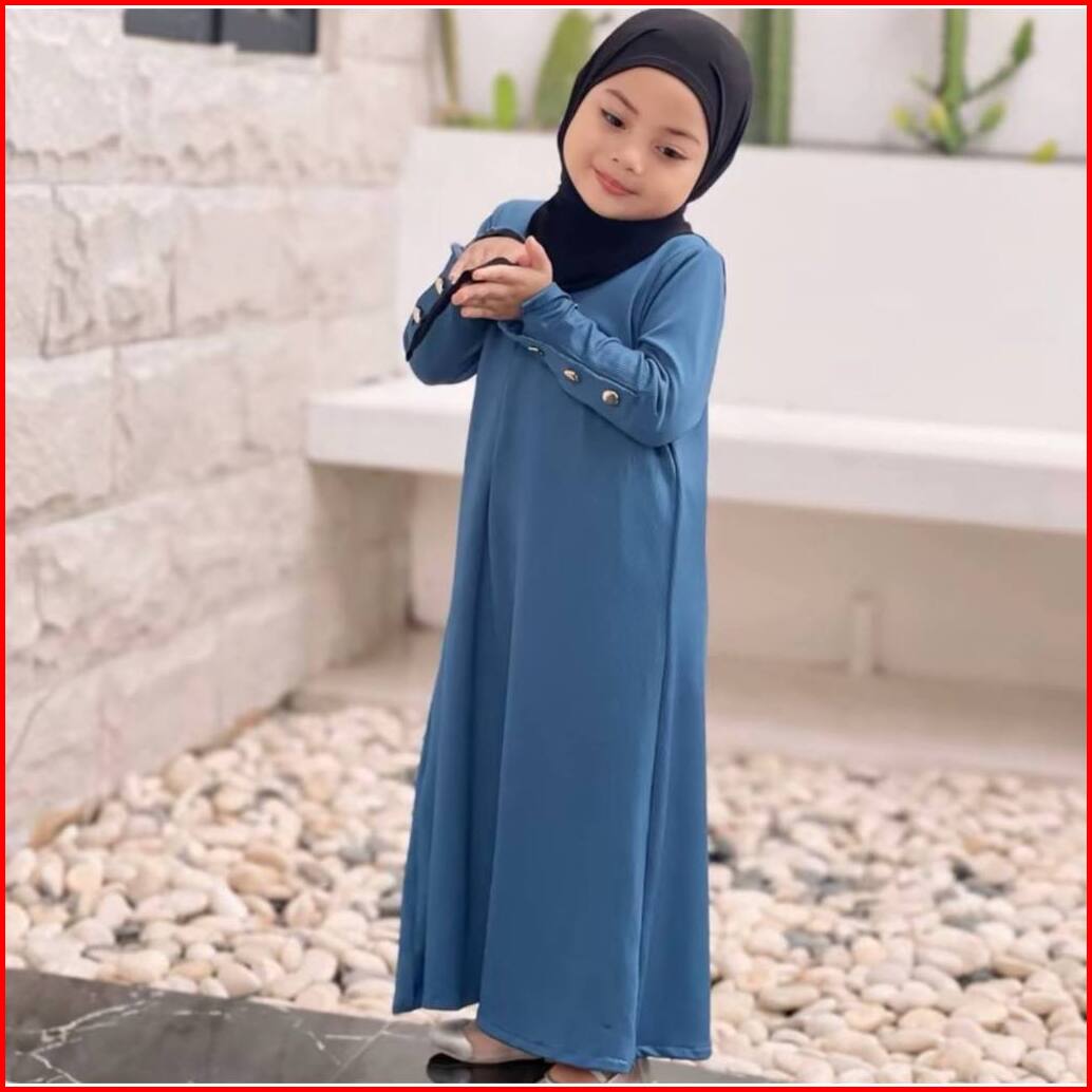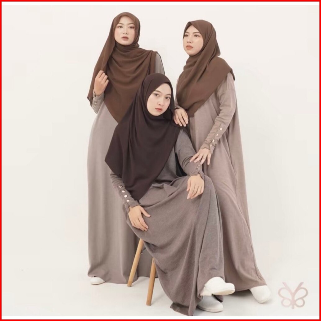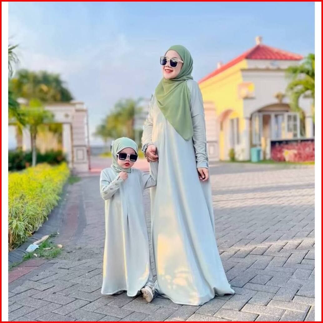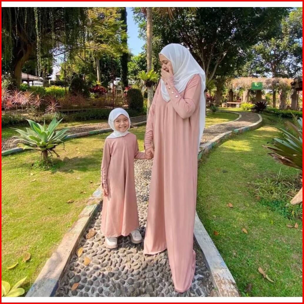 Abaya Ibu Dan Anak Knit Premium Resleting Depan Dress Batwing Lengan Kancing
