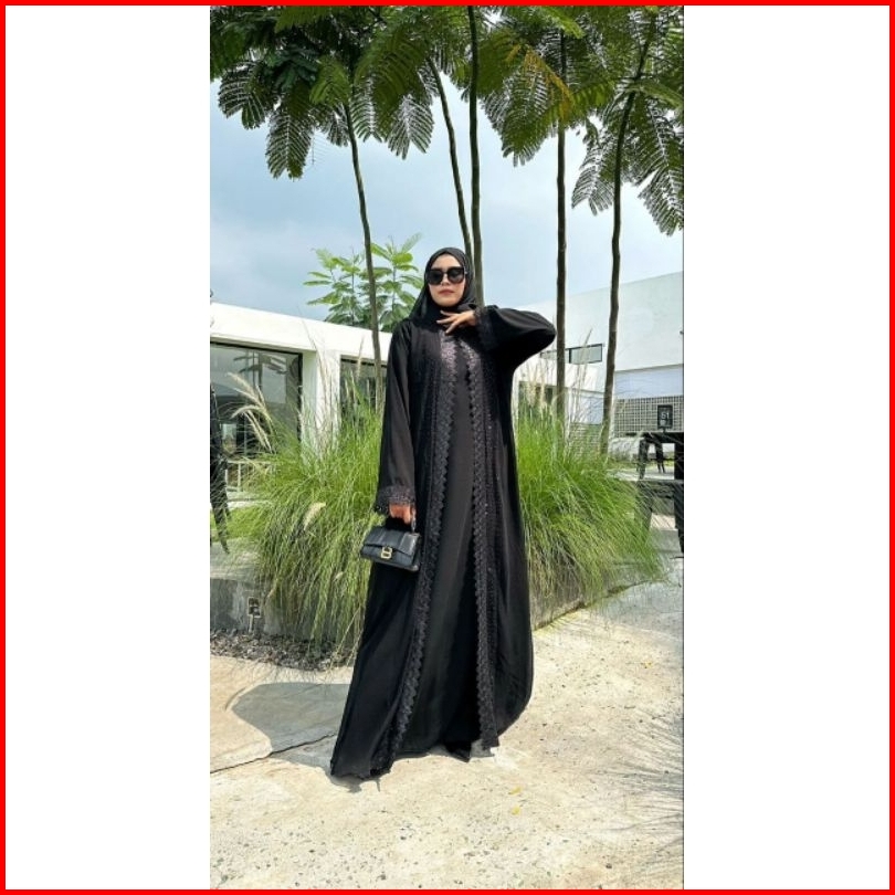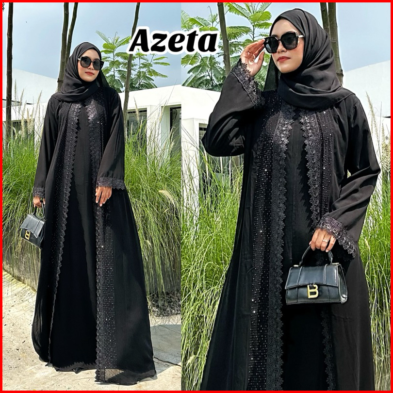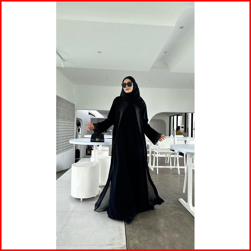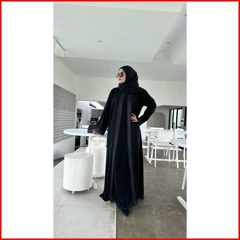 Abaya Hitam Gamis Wanita Terbaru Turkey Razeta Black Renda Exclusive Sifon Muslim Dress Syari Umroh Abaya Rezata