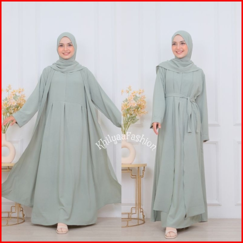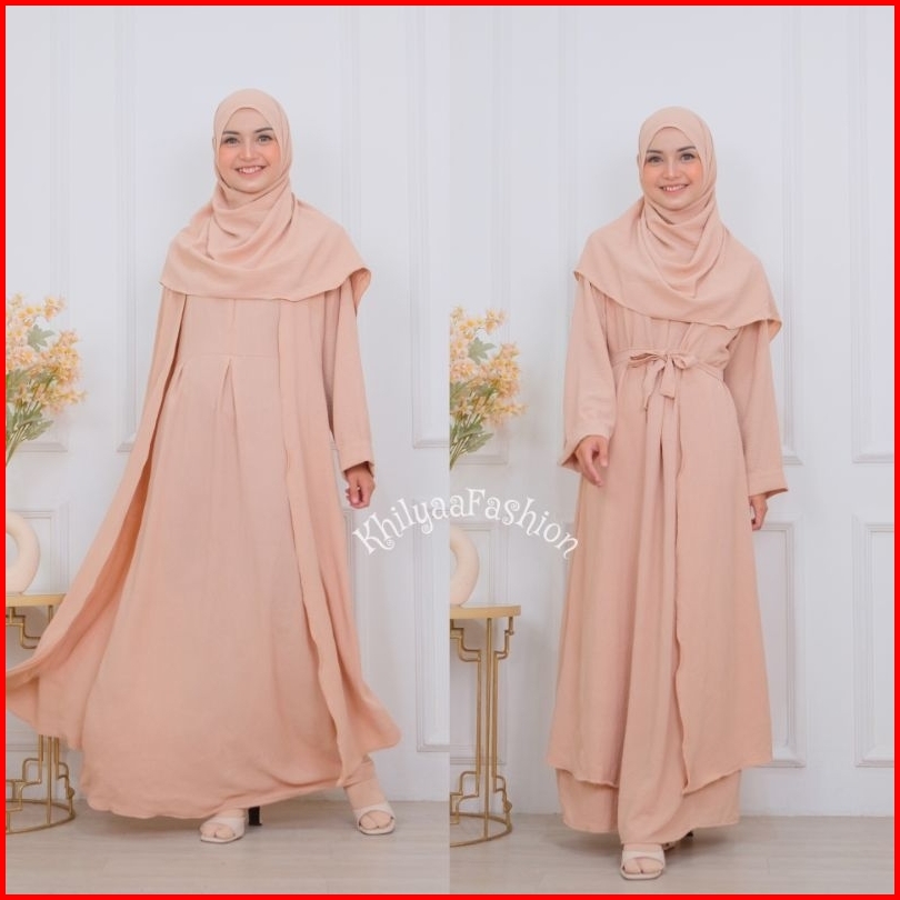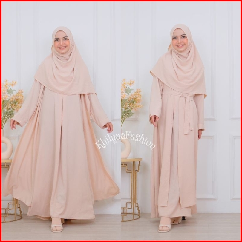 Khilyaafashion-abaya Turkey Arab Set Hijab Pashmina Terbaru Abaya Medina Basic Hitam Outer Menyatu Gamis Muslimah Syar I