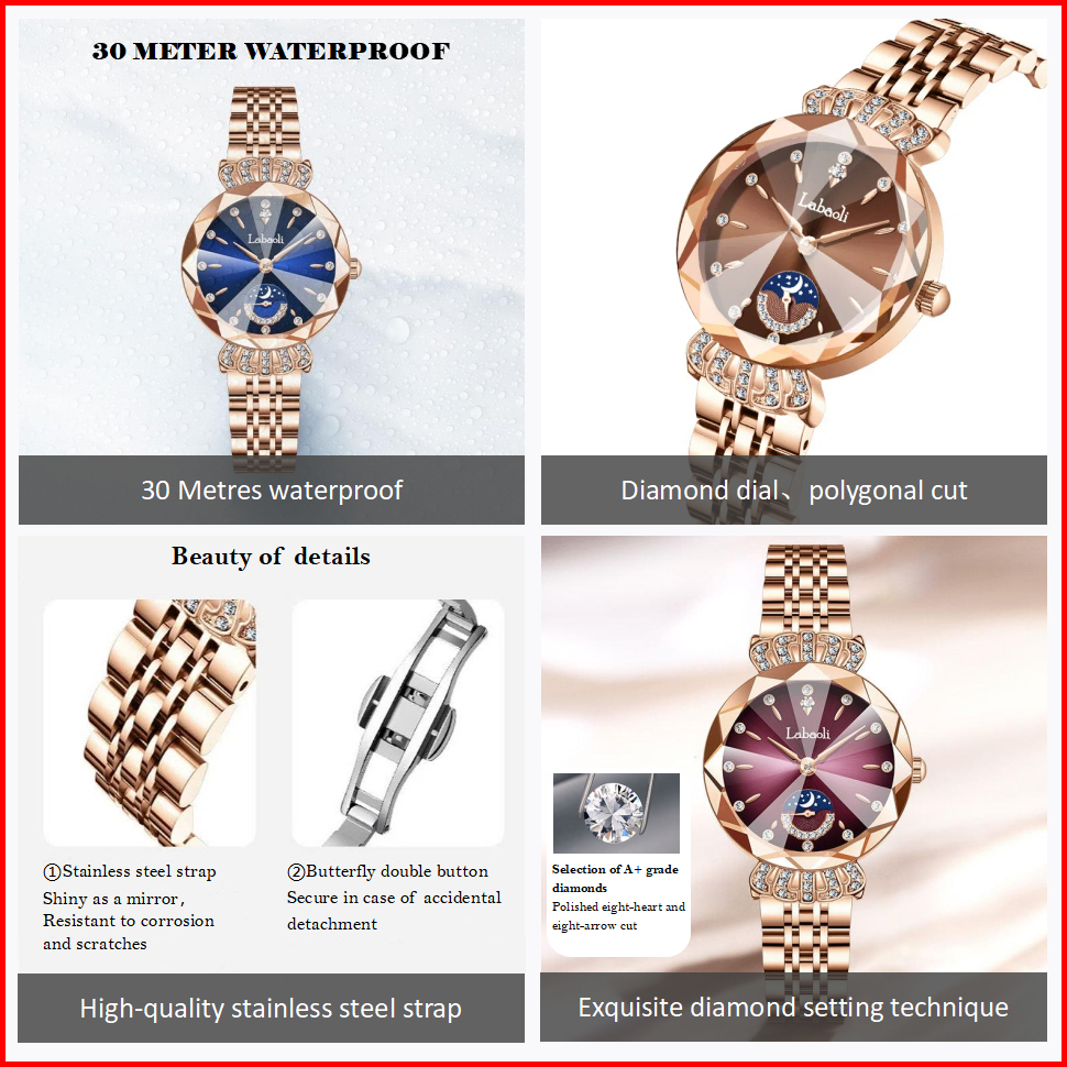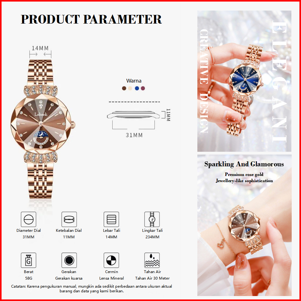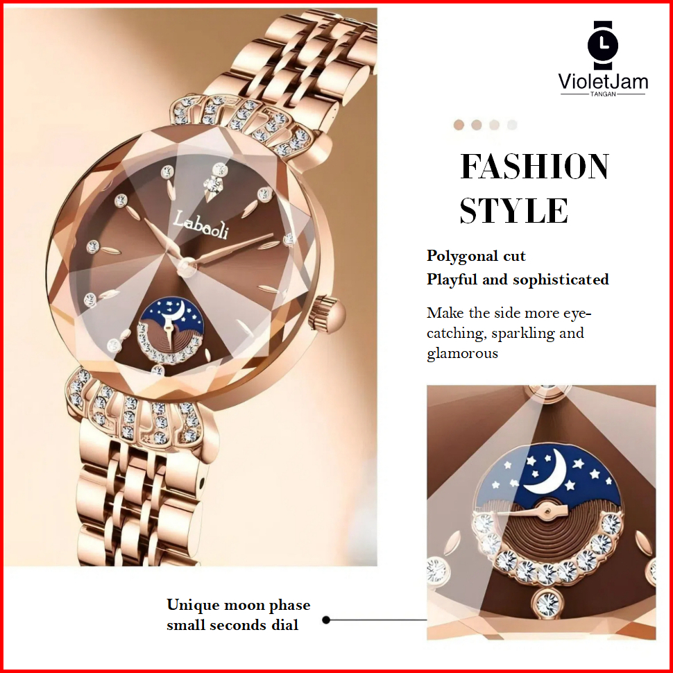 Jam Tangan Wanita Original Anti Air Tali Berlian Stainless Steel Jam Kuarsa Santai Mewah Jam Tangan Cewek Seri Labaoli