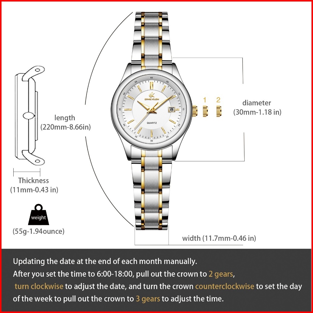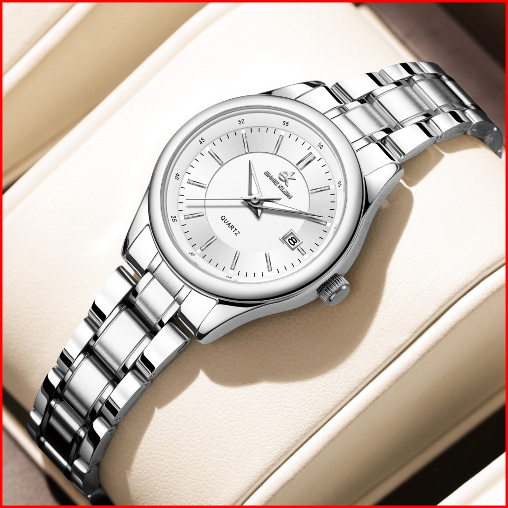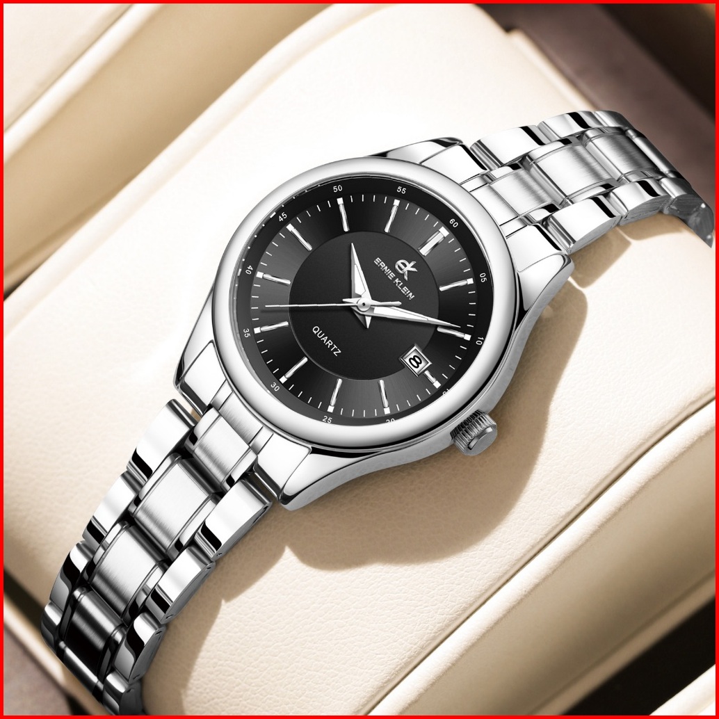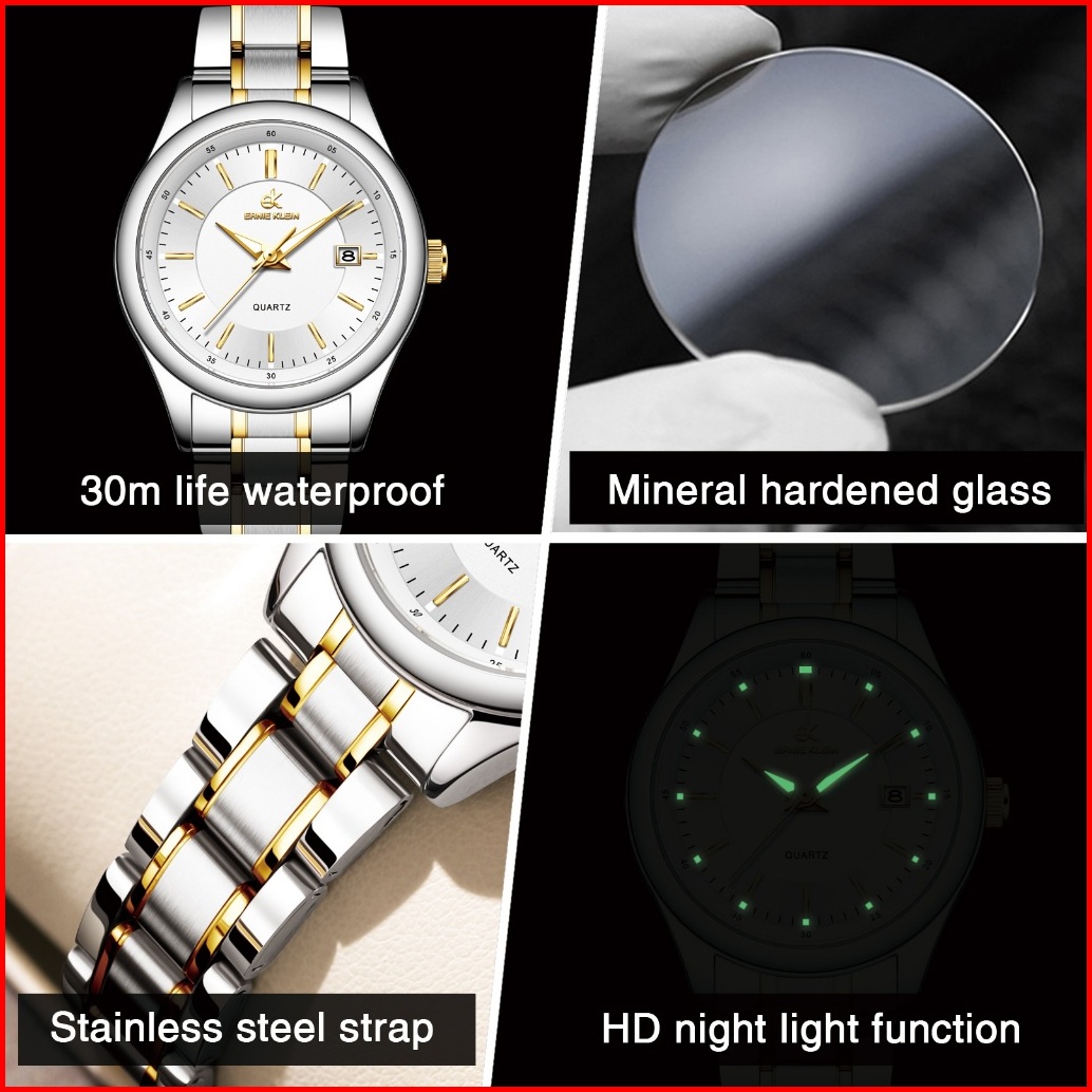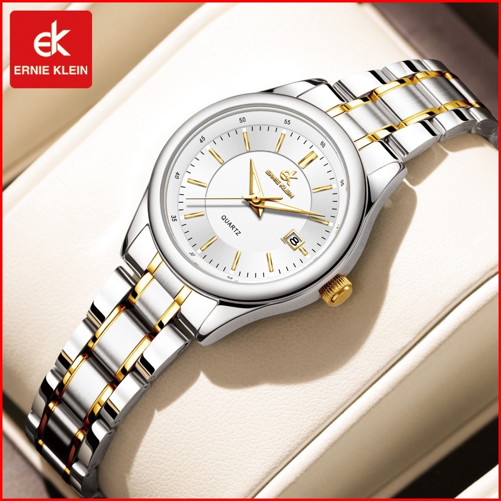 Ernie Klein Jam Tangan Wanita Anti Air Original Cewek Kalender Analog Luminous Women Watch Stainless Steel L3206