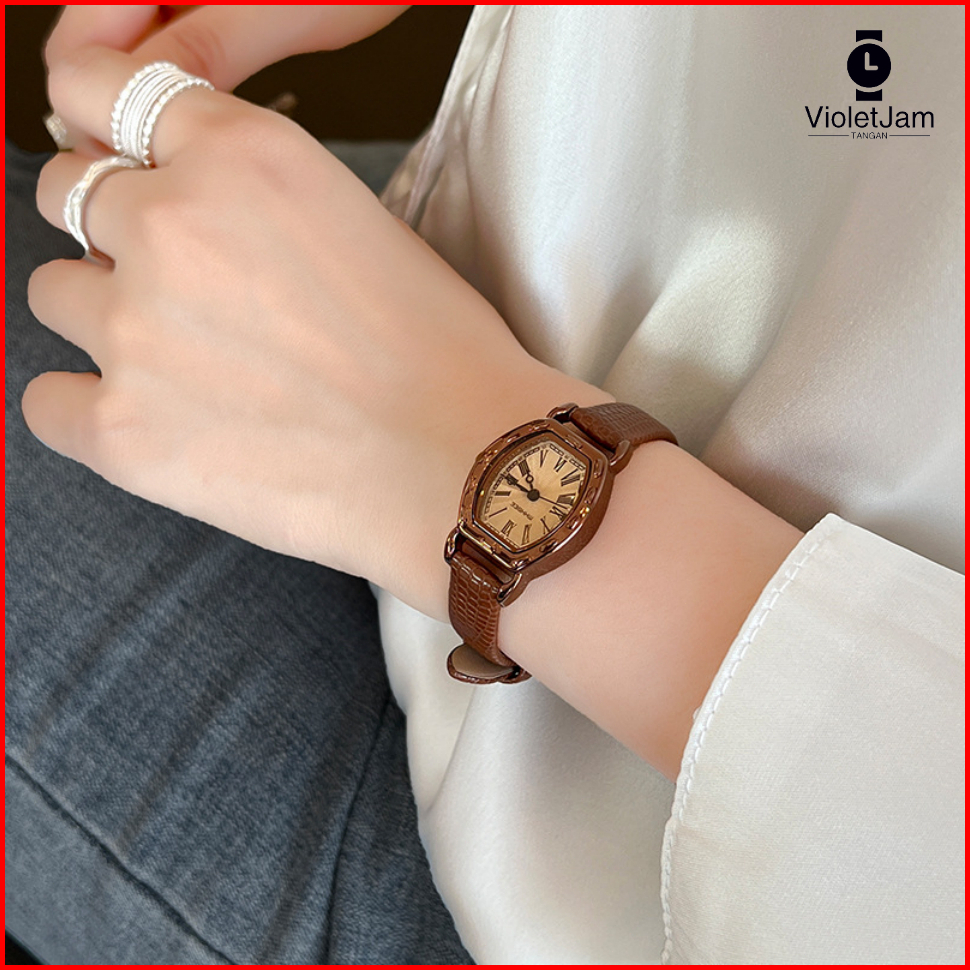 Jam Tangan Wanita Vintage Analog Korea Watch Jam Tangan Wanita Kulit Asli Small Diameter