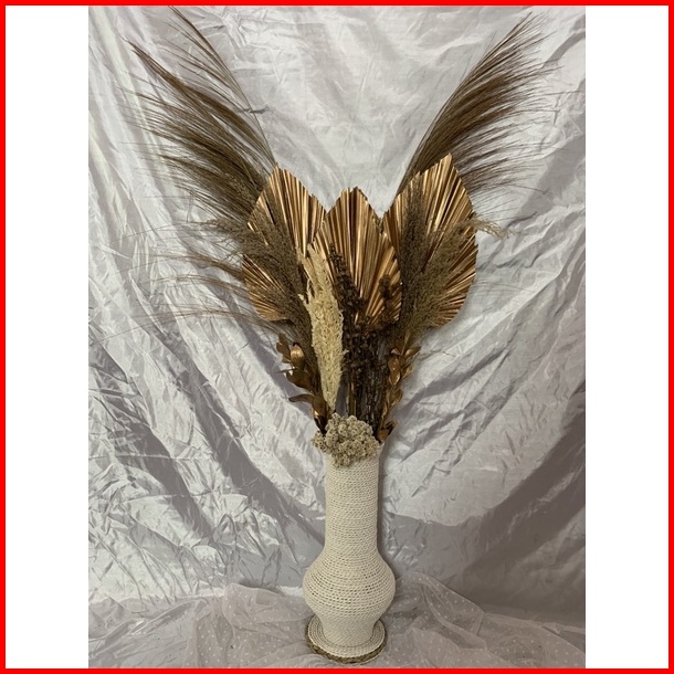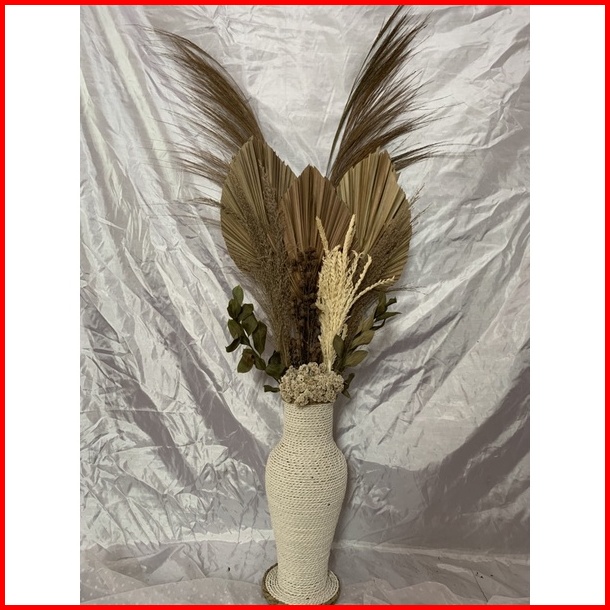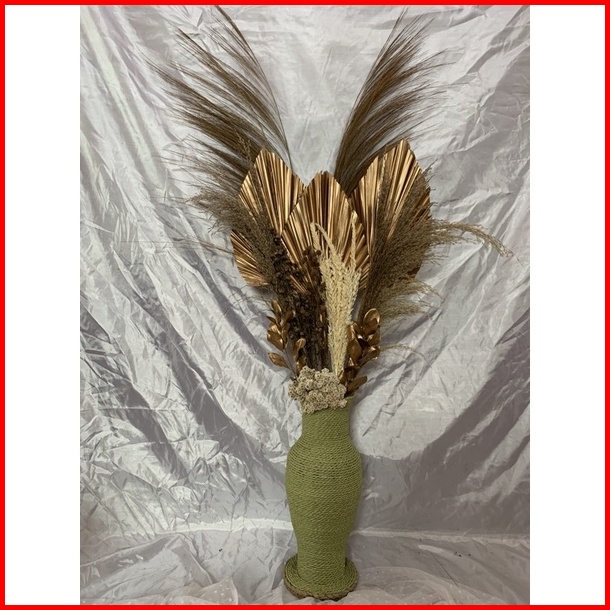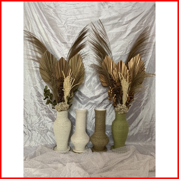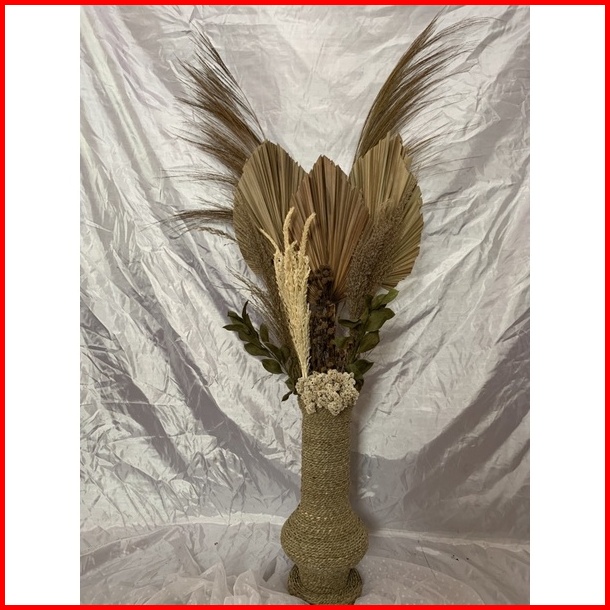 Paket Dekorasi Aesthetic Sudut Ruangan Vas Mendong 40cm Palem Kering Lebar 20 Cm Bunga Kering