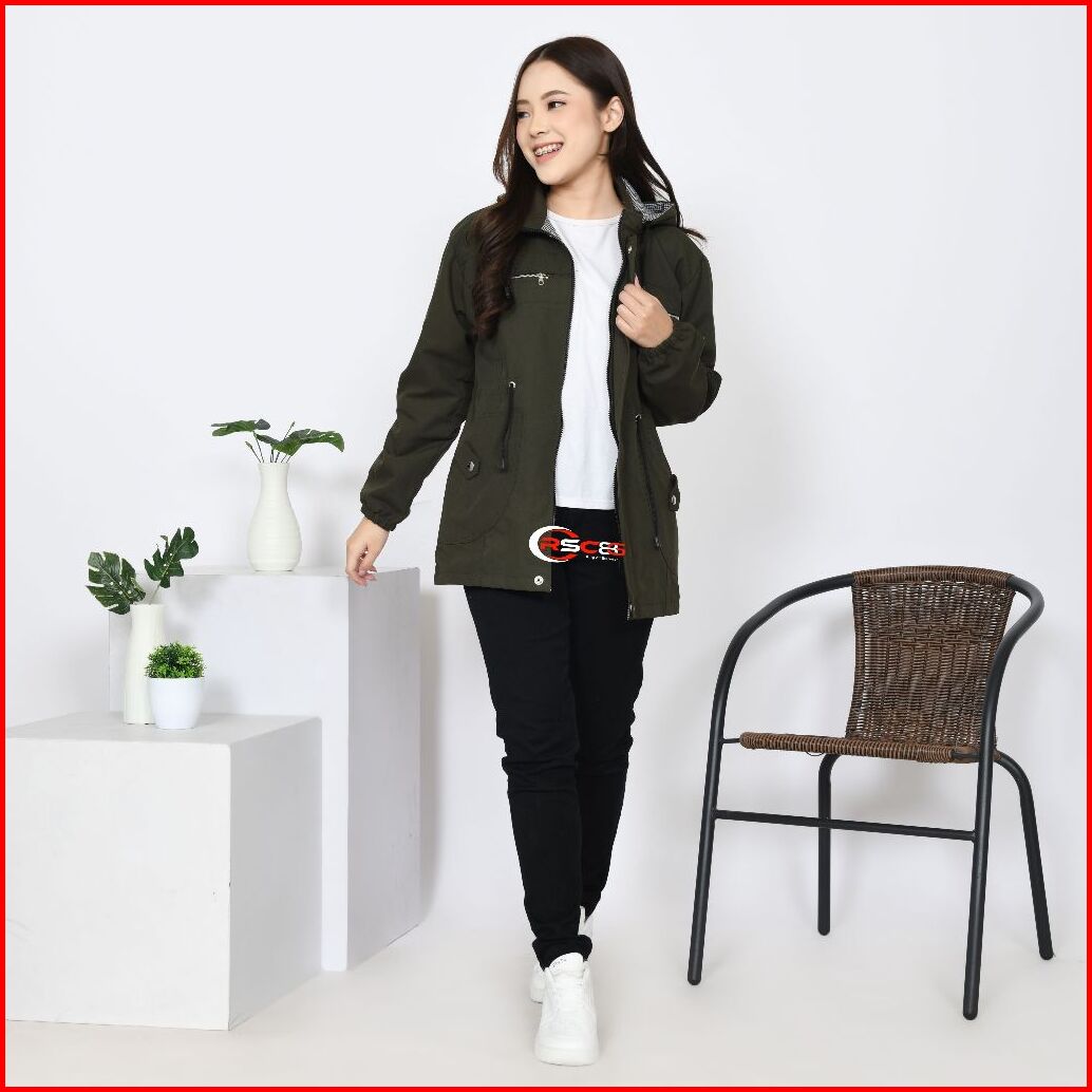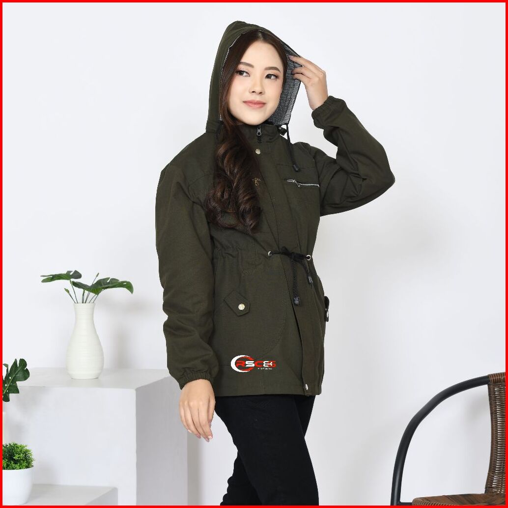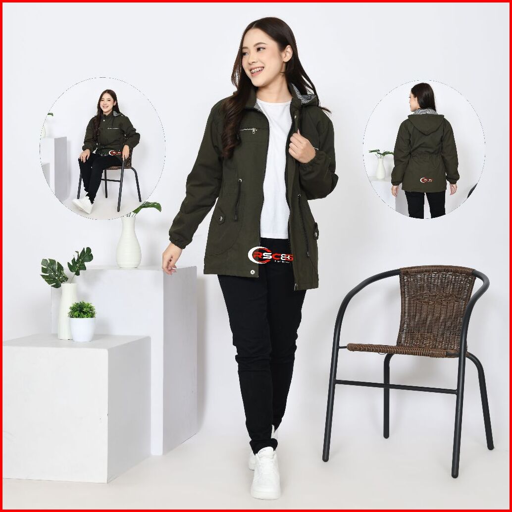 Rsc86 Jaket Parka Wanita Bolak Balik Ukuran Besar Bahan Katun Kanvas