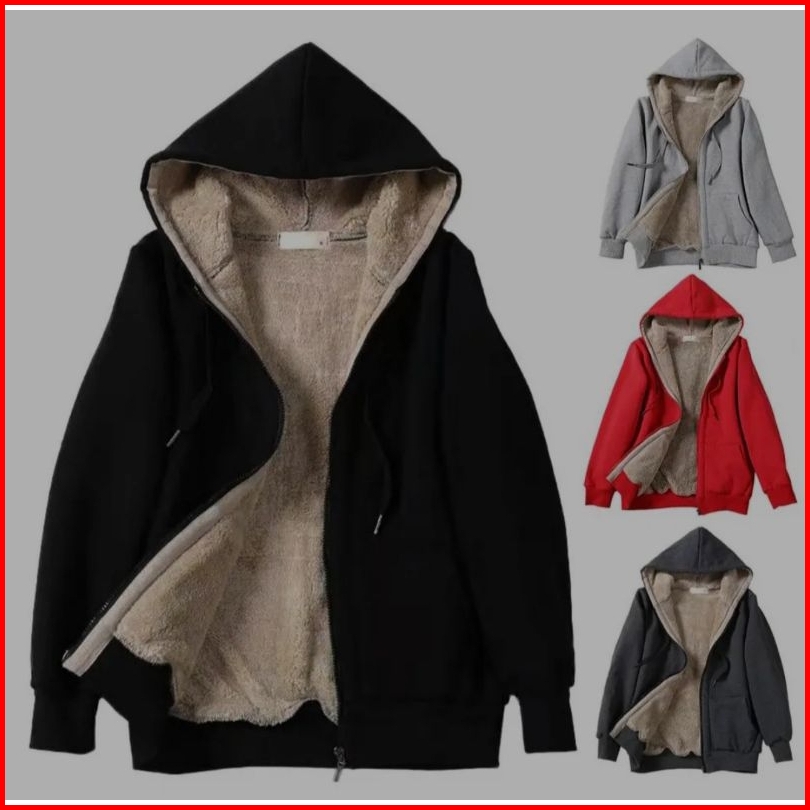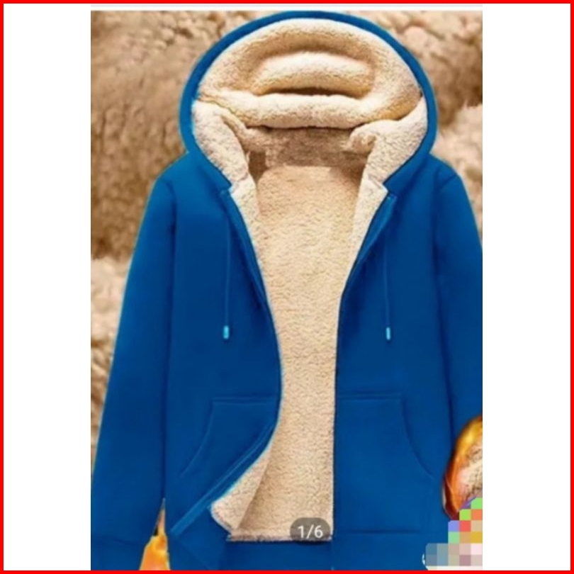 Hoodie Zipper Blu Tebal Dan Hangat Jaket Sherpa Hoodie Musim Dingin Ukuran Jumbo Sweater Hoodie Sherpa