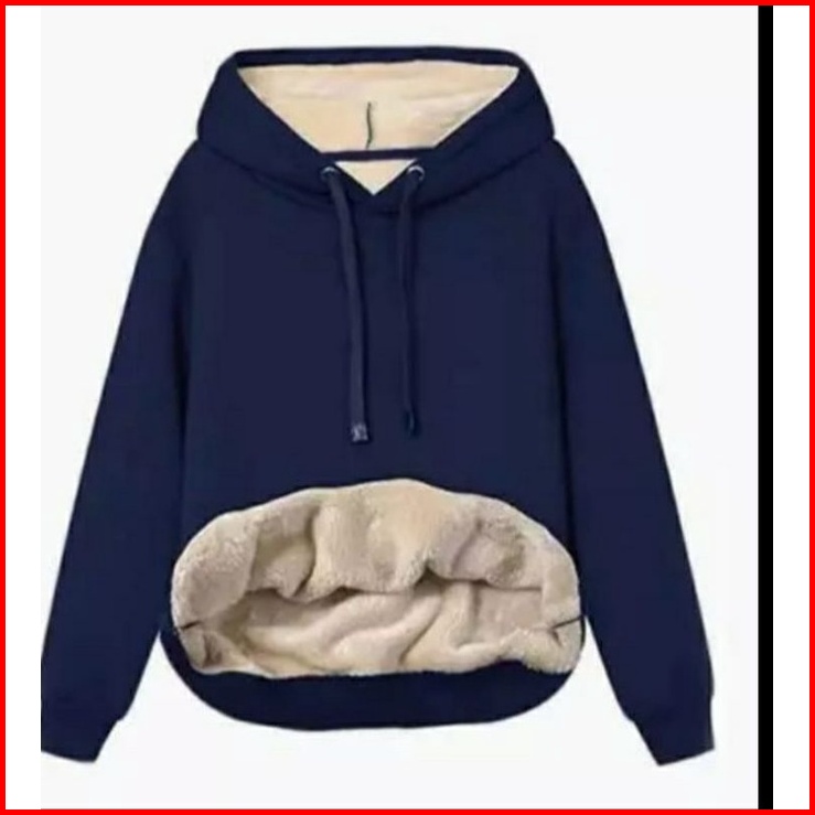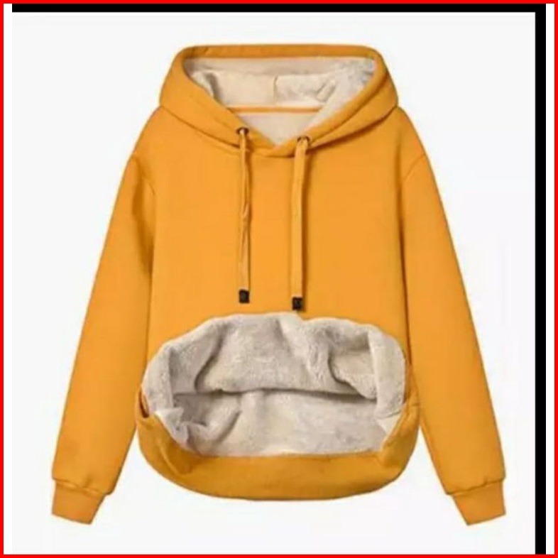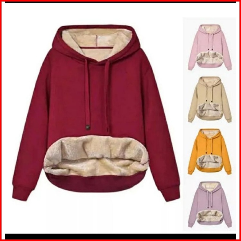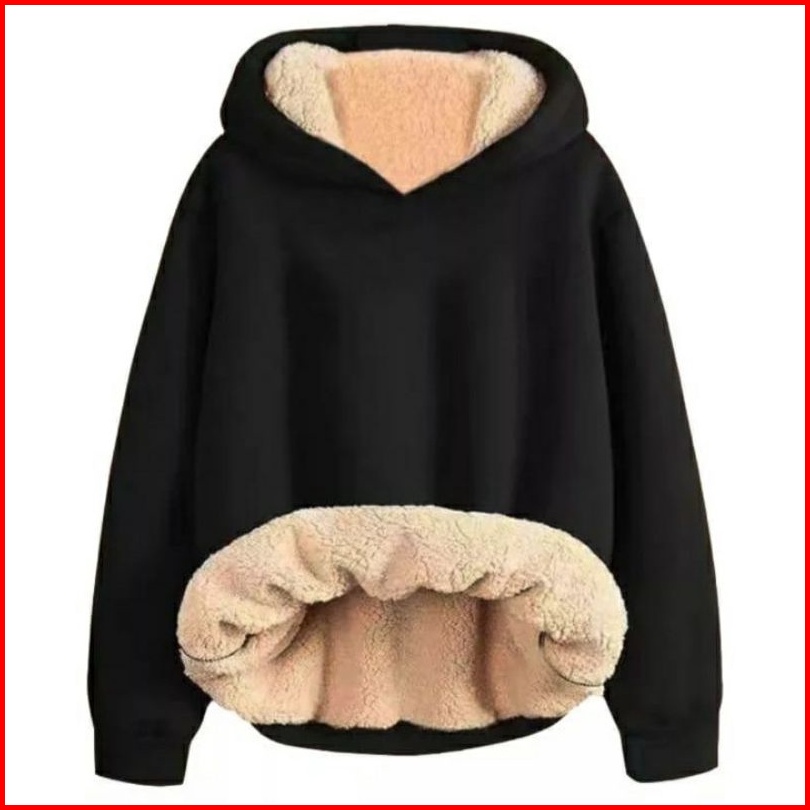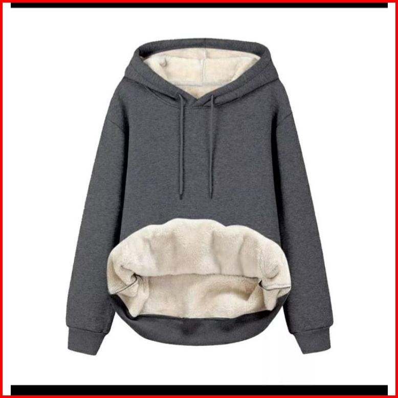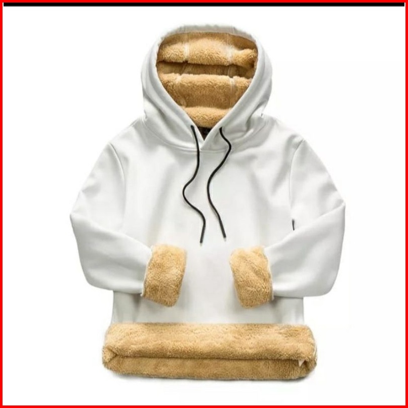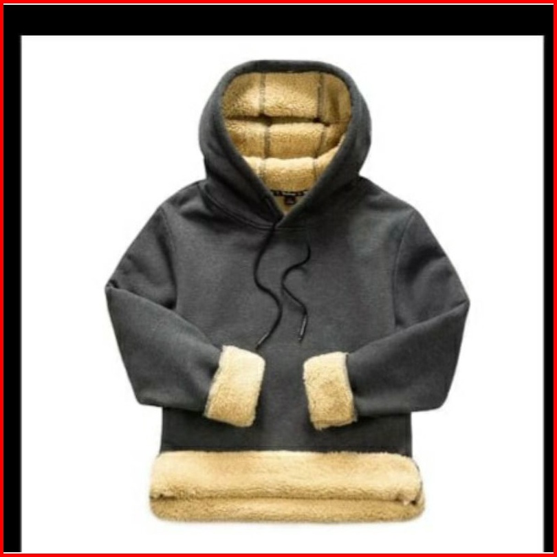 Hoodie Musim Dingin Sweater Bertudung Termal Jaket Beludru Pulloper