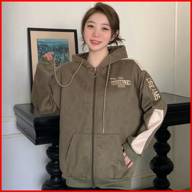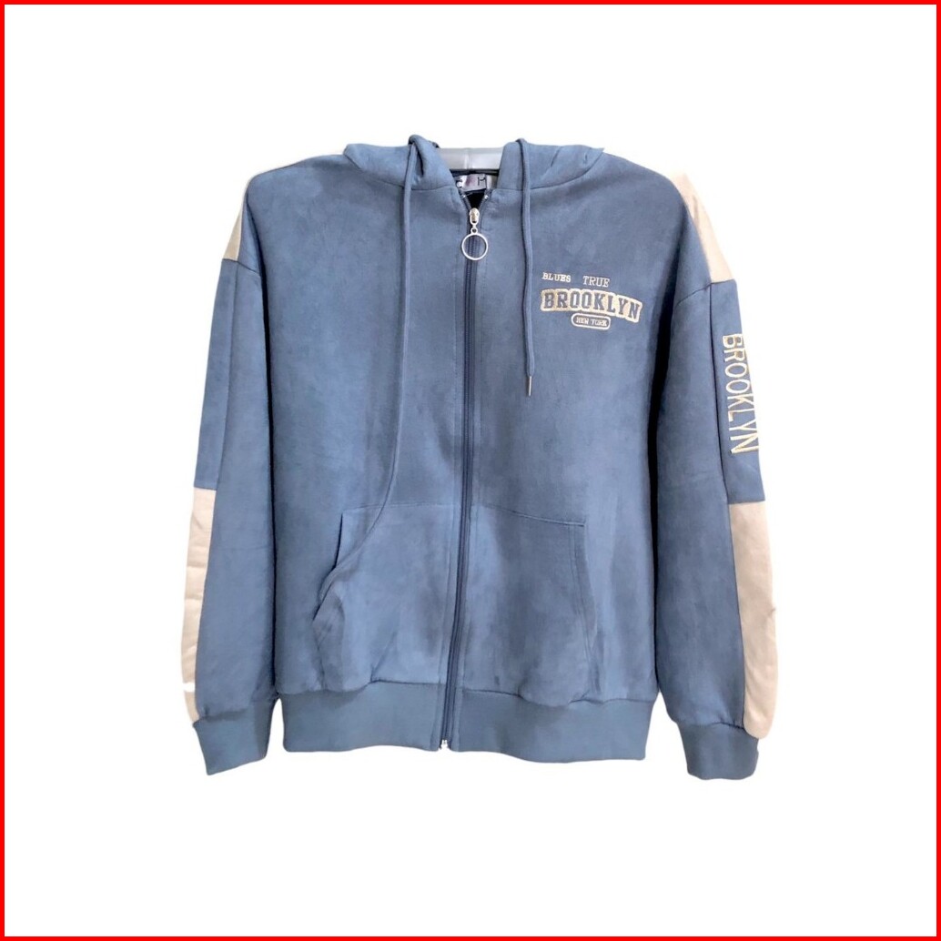 Jaket Hoodie Zipper Wanita Premium Suede Bludru Allsize - Brooklyn