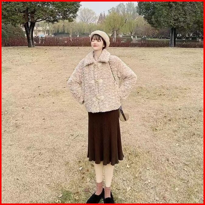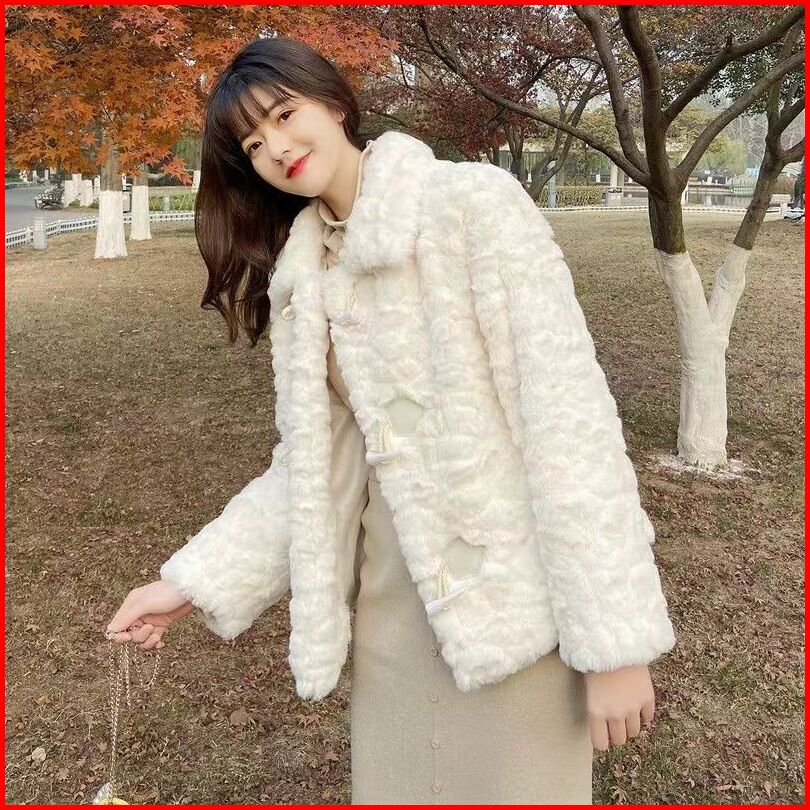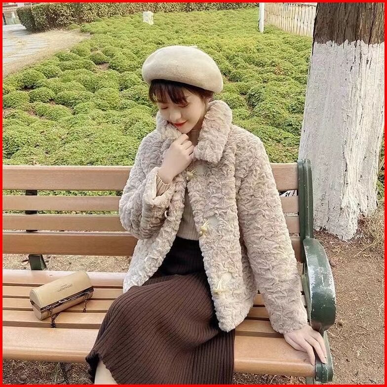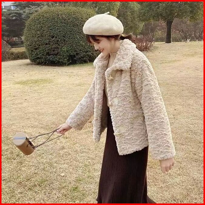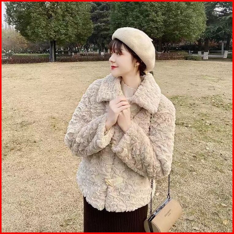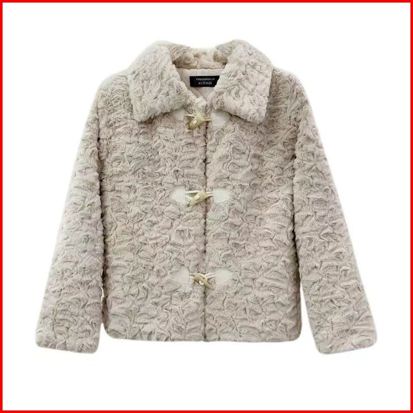 66tt Dress Darling Nxfs001 Jaket Kancing Tanduk Baru 2024 Mantel Wol Domba Wanita Atasan Pendek Wanita
