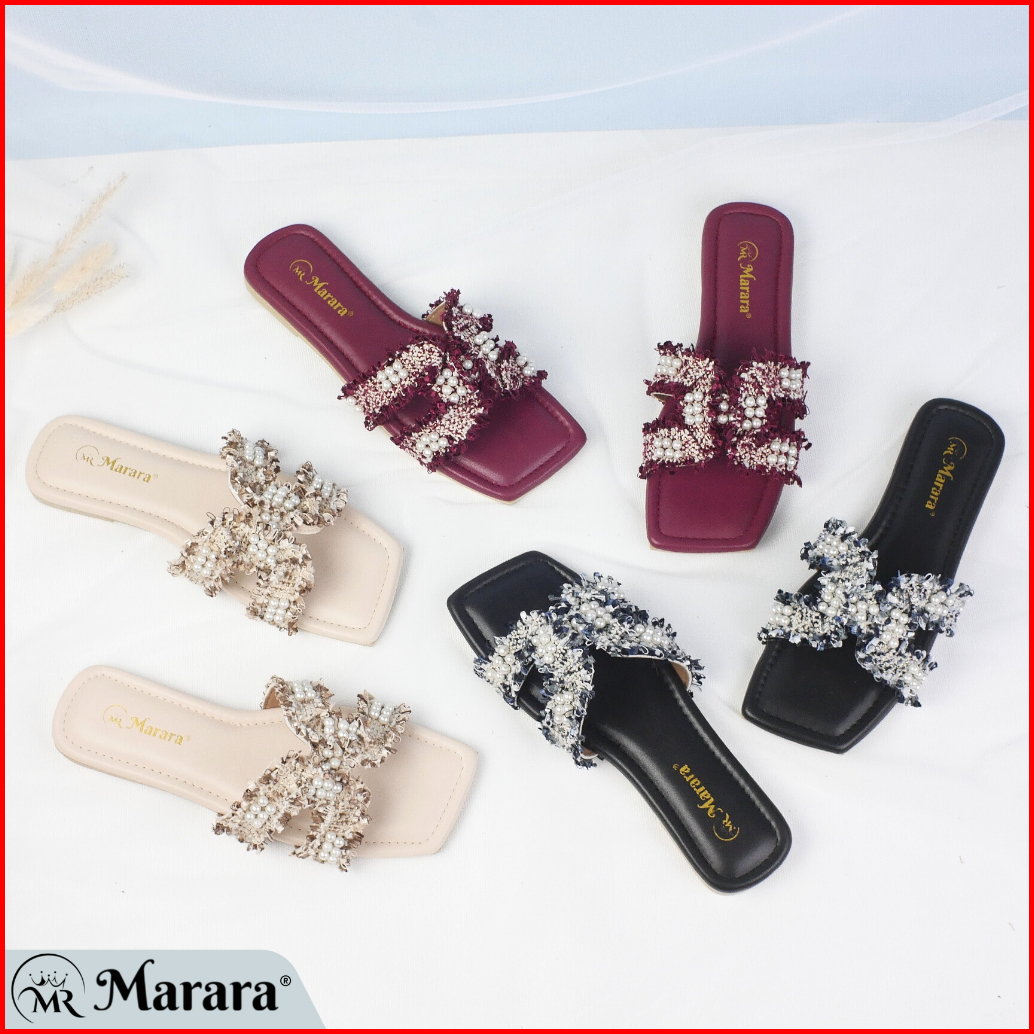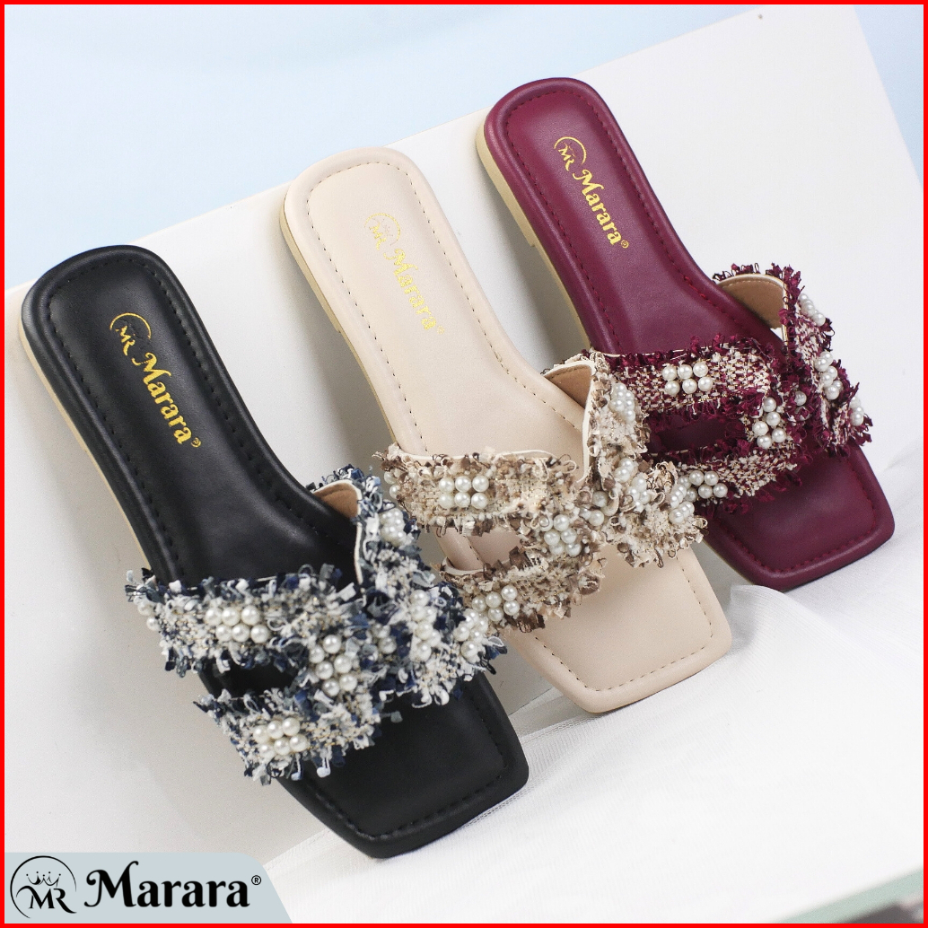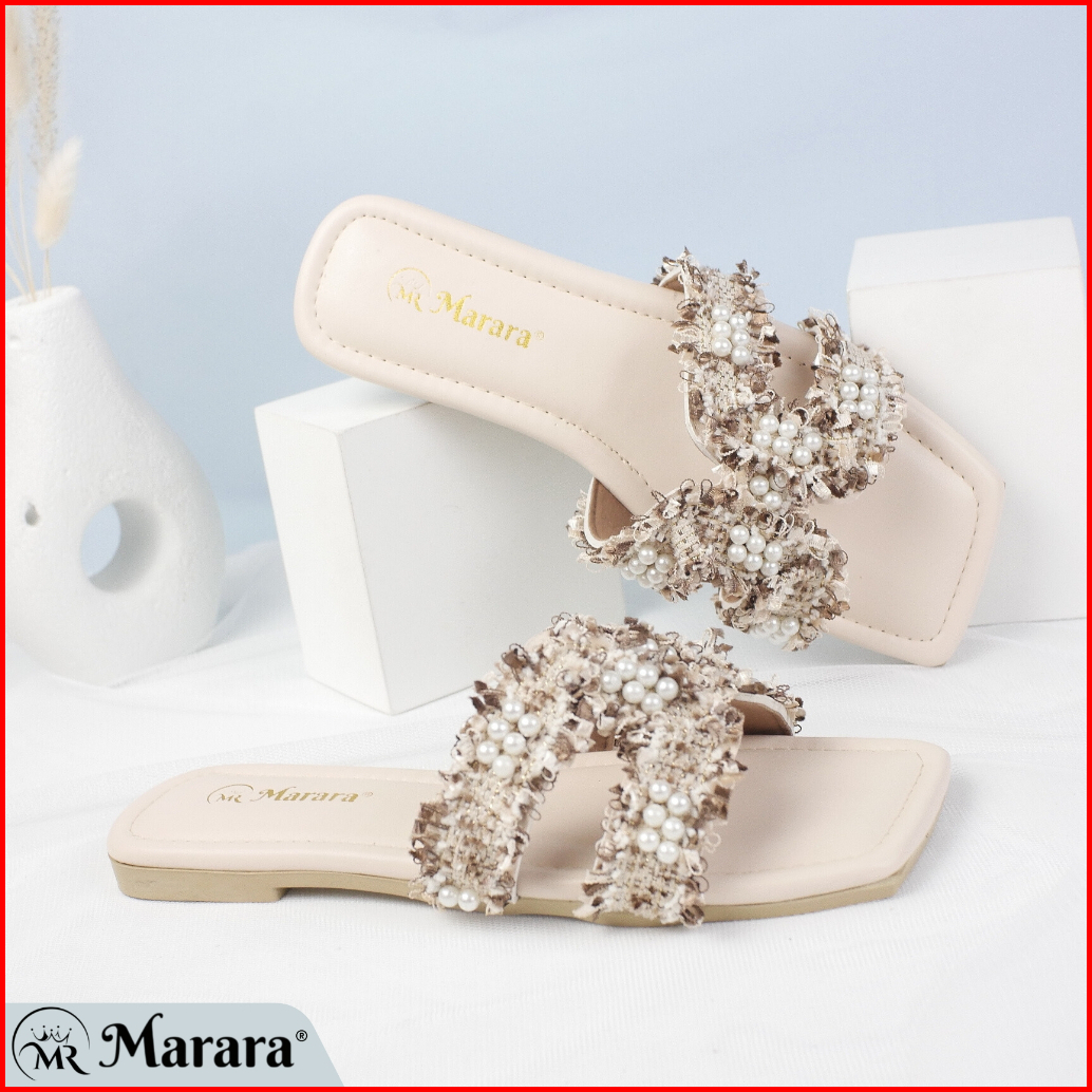 Marara - Sandal Wanita Selop Teplek Belia - Krem