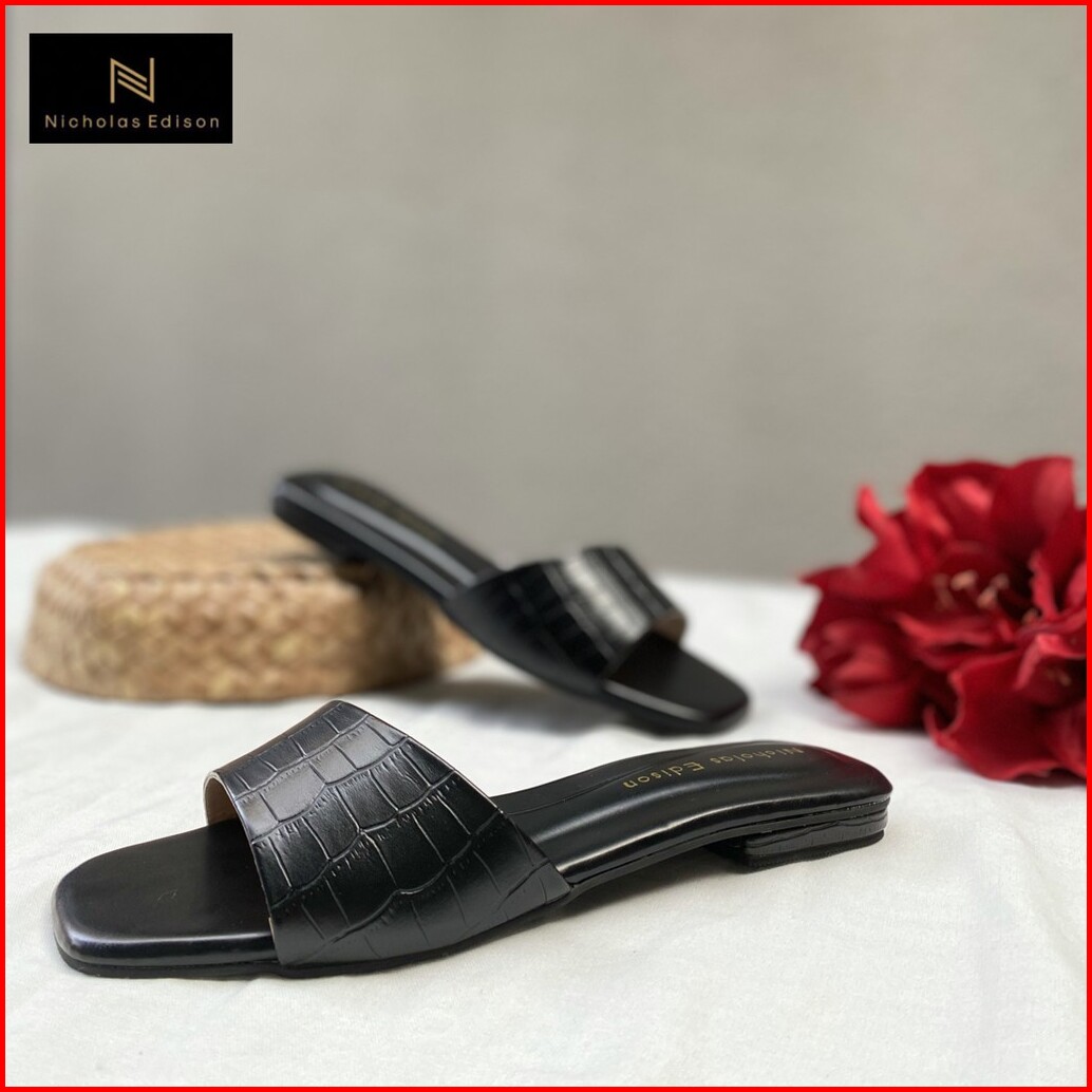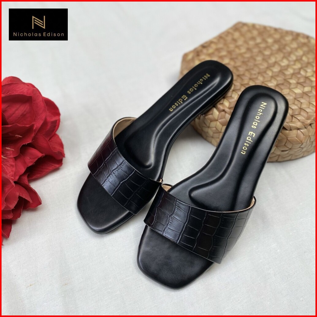 Nicholas Edison Sandal Rika Black Sandal Wanita Croco Terbaru