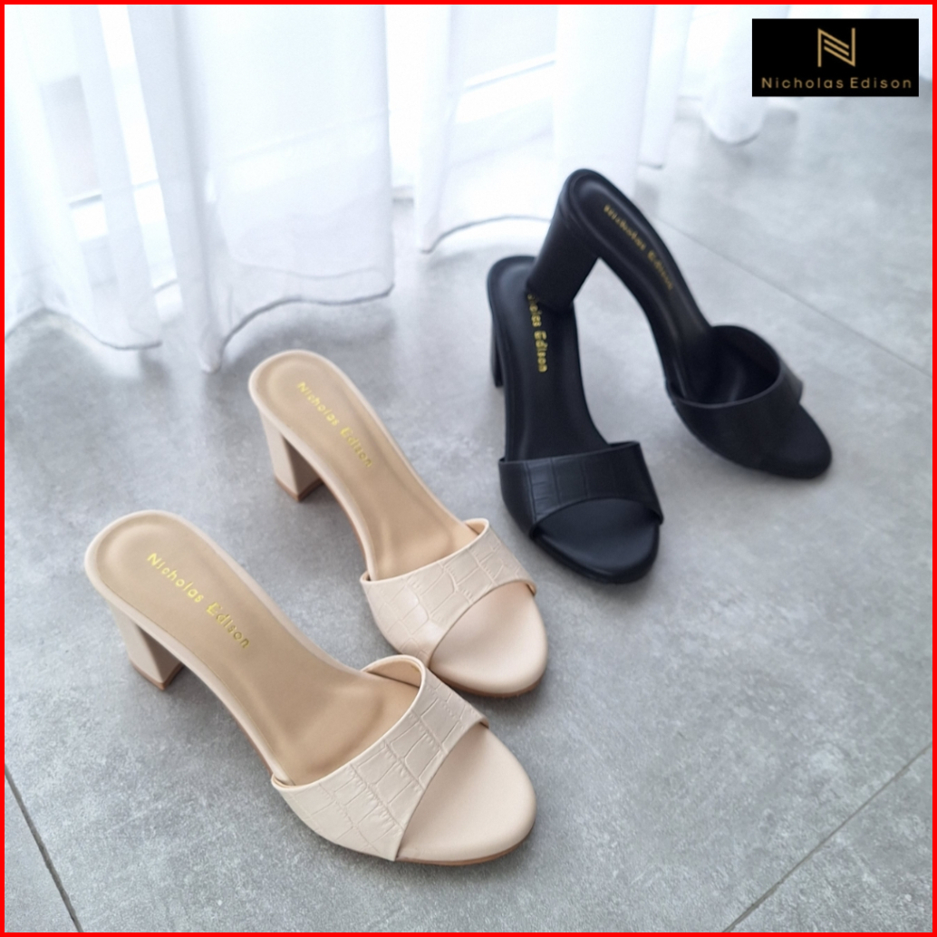Nicholas Edison Heel Tera Sandal Heel Hak Tebal Croco Terbaru