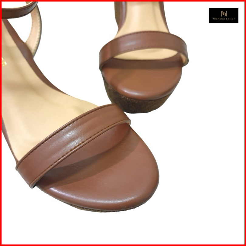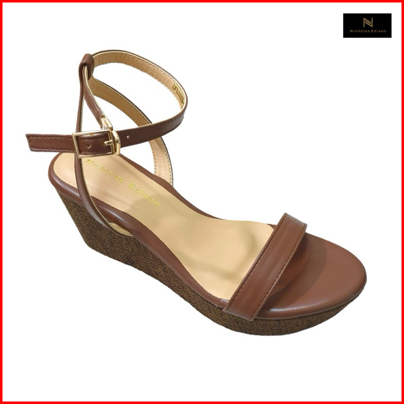 Nicholas Edison Wedge Zafir Brown Sandal Wedges Kanvas Unik Terbaru