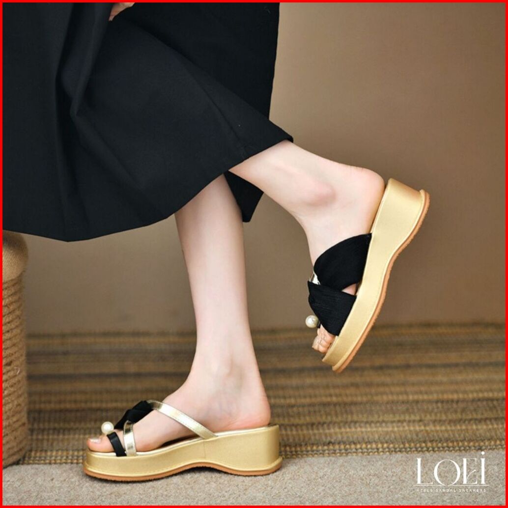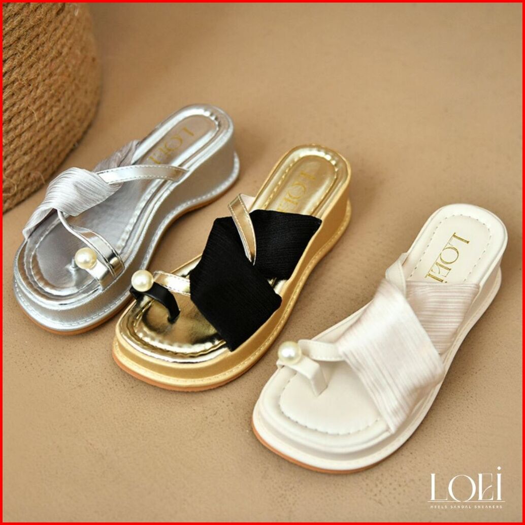 Loei Orin Wedges Tali Wanita Modis Sepatu Sandal Hak Tebal 5 Cm 3025