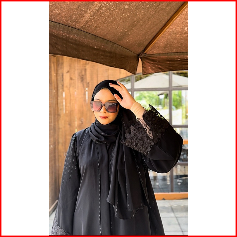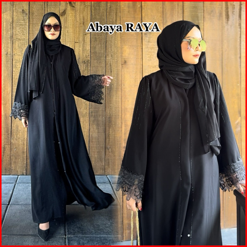 Abaya Hitam Wanita Terbaru Arab Dress Muslim Turkey Maxi Bordir Swarosky Dubai Raya