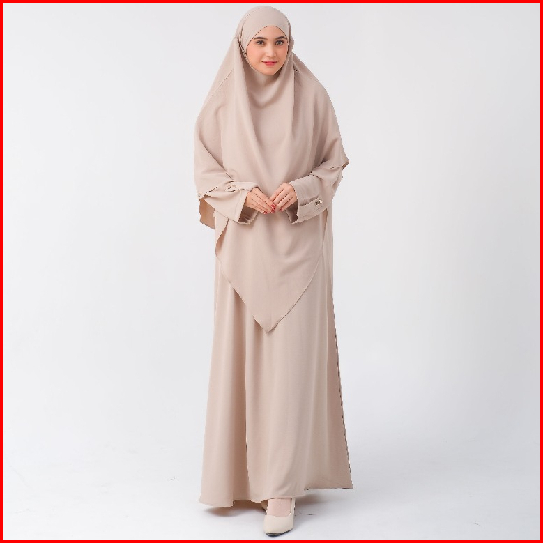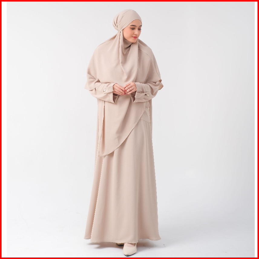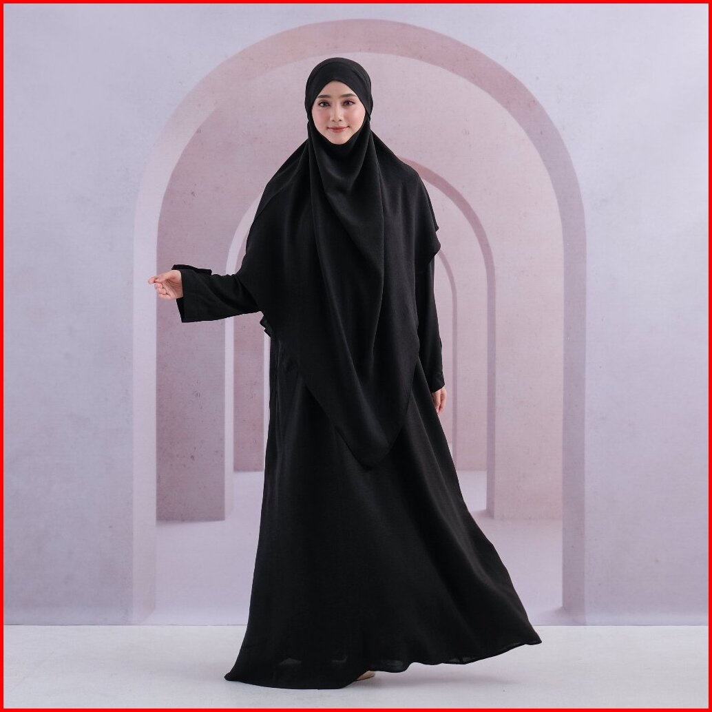 Zahwa - Mina Set Frenc Khimar Gamis Abaya Umroh Premium Bahan Linen Lineca Air Flow Allsize