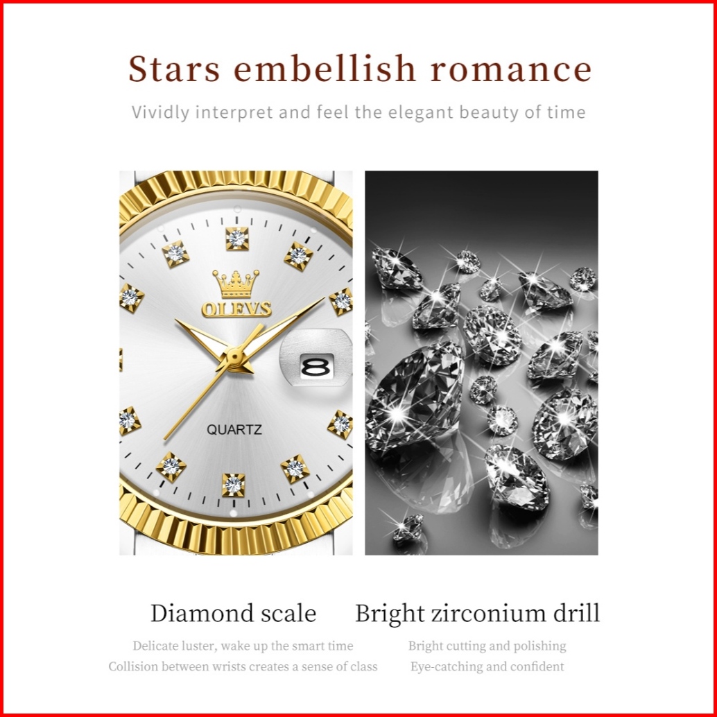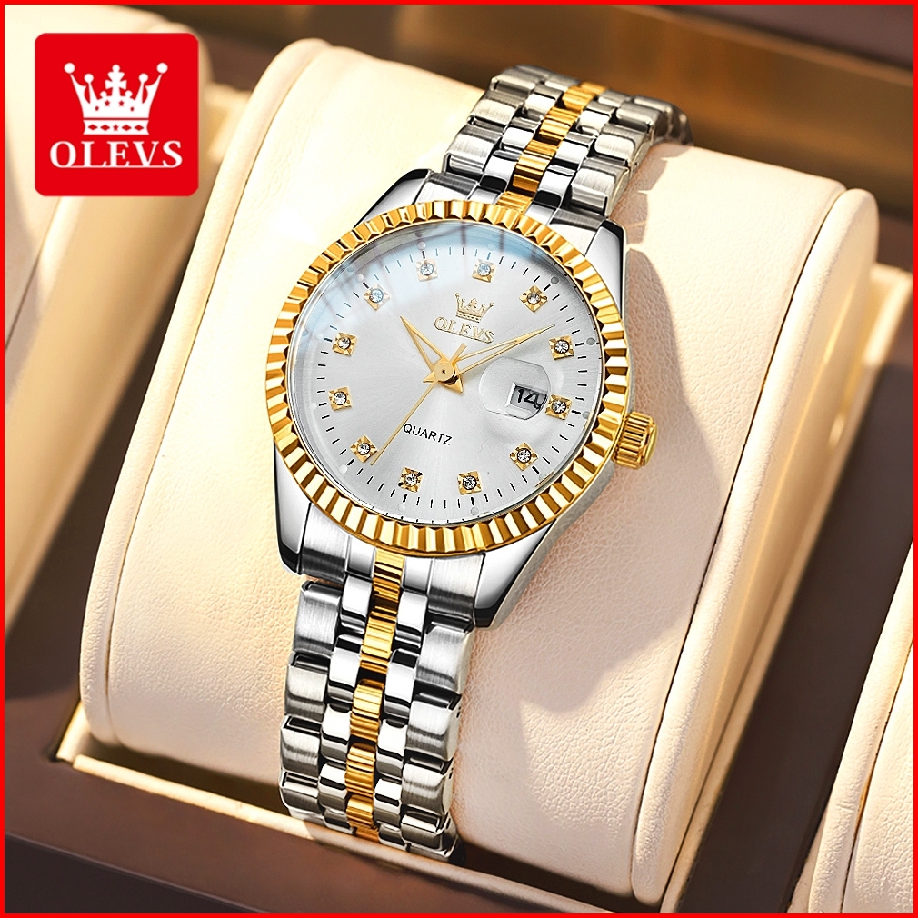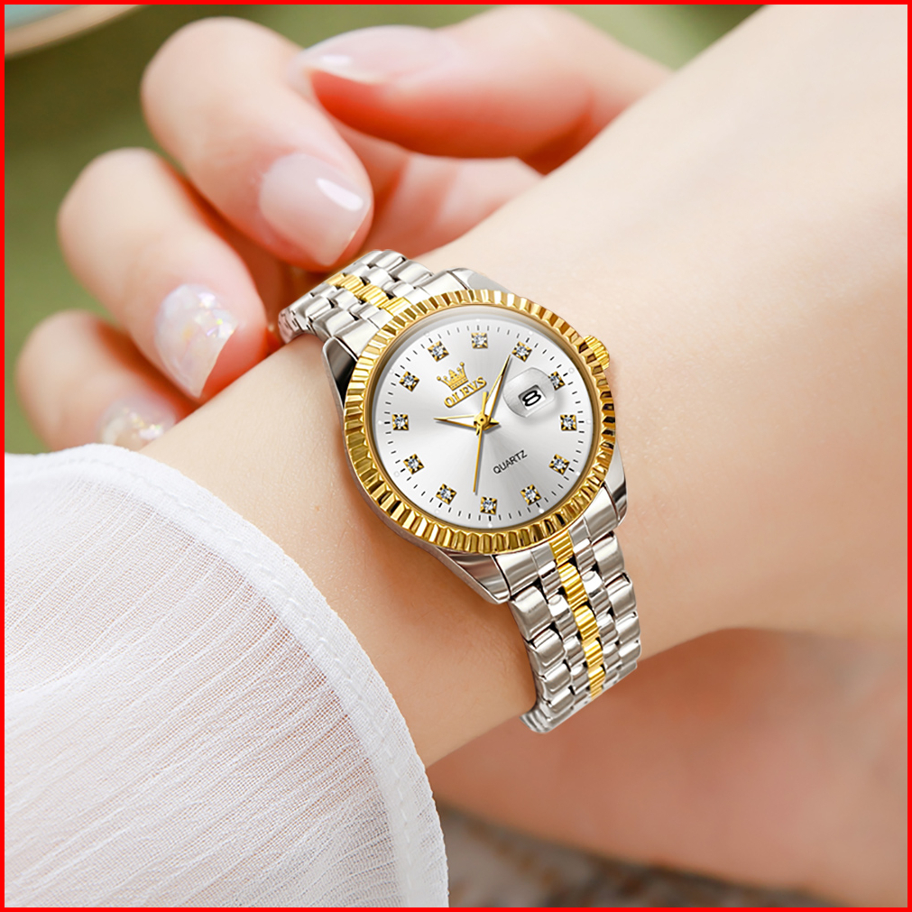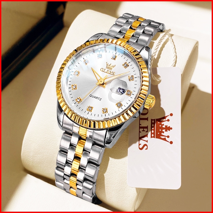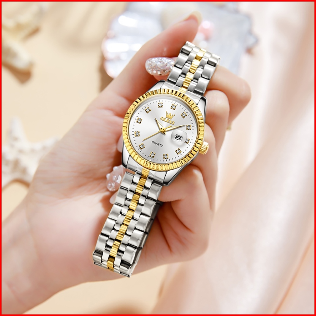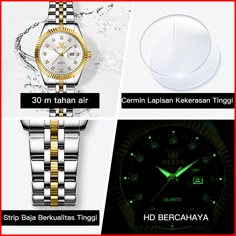 Olevs Jam Tangan Wanita Original Anti Air Tahan Air Analog Trend Terbaru Casual Fashion Cewek Elegan Putih Hitam Stainle