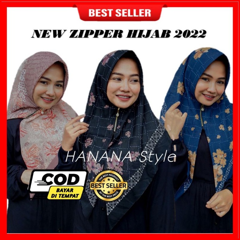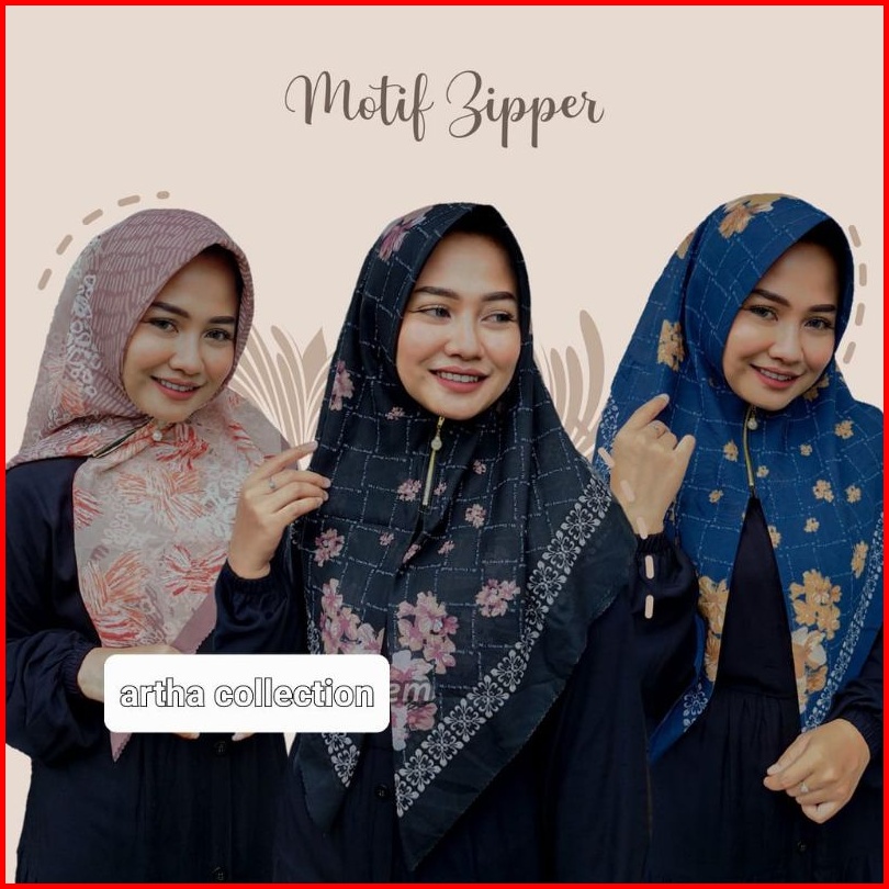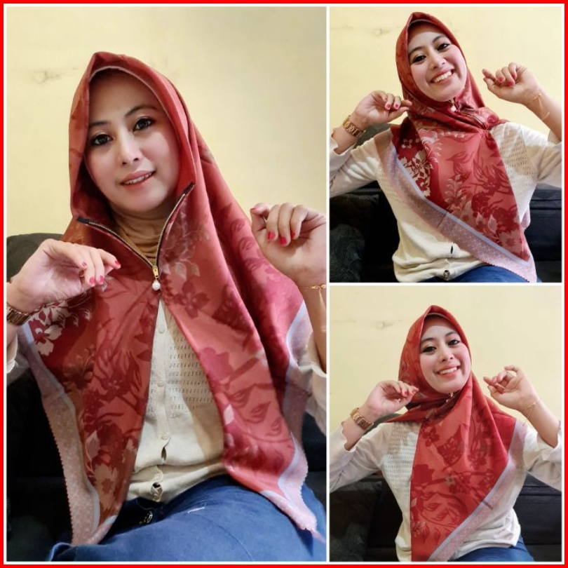 Promo 90 Ribu 5pcs Hijab Segi Empat Zipper Resleting Motif Terbaru