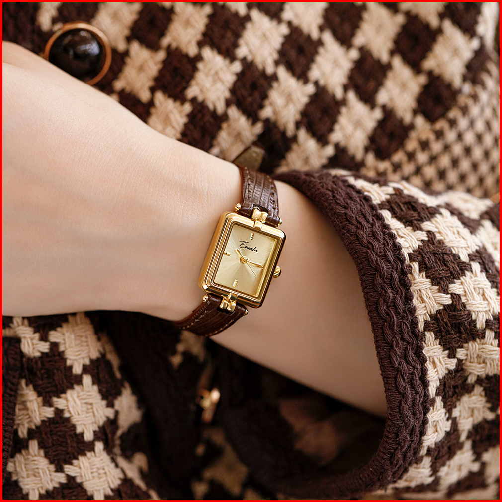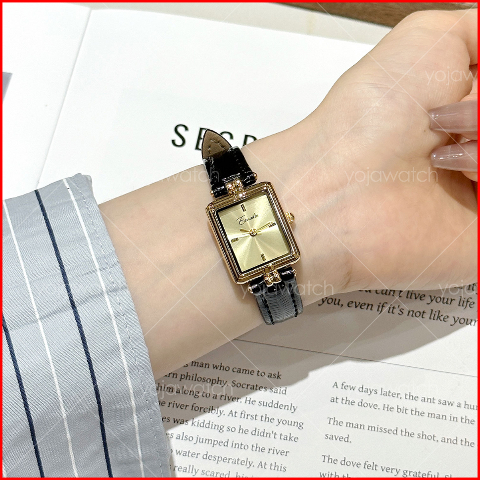 Eavanlin Vintage Kotak Jam Tangan Wanita Korea Strap Leather Analog Fashion Korea