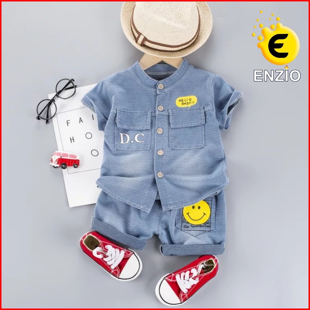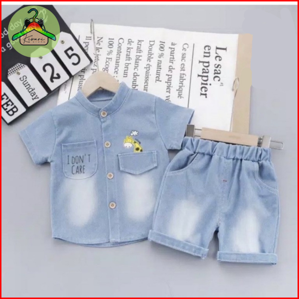 Setelan Kemeja Anak Denim 1-4 Tahun Kiwari88