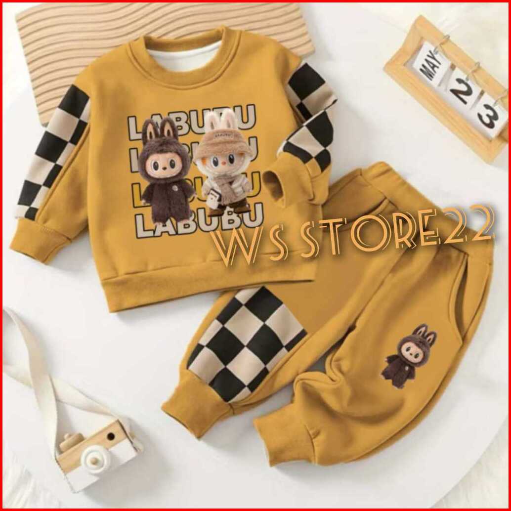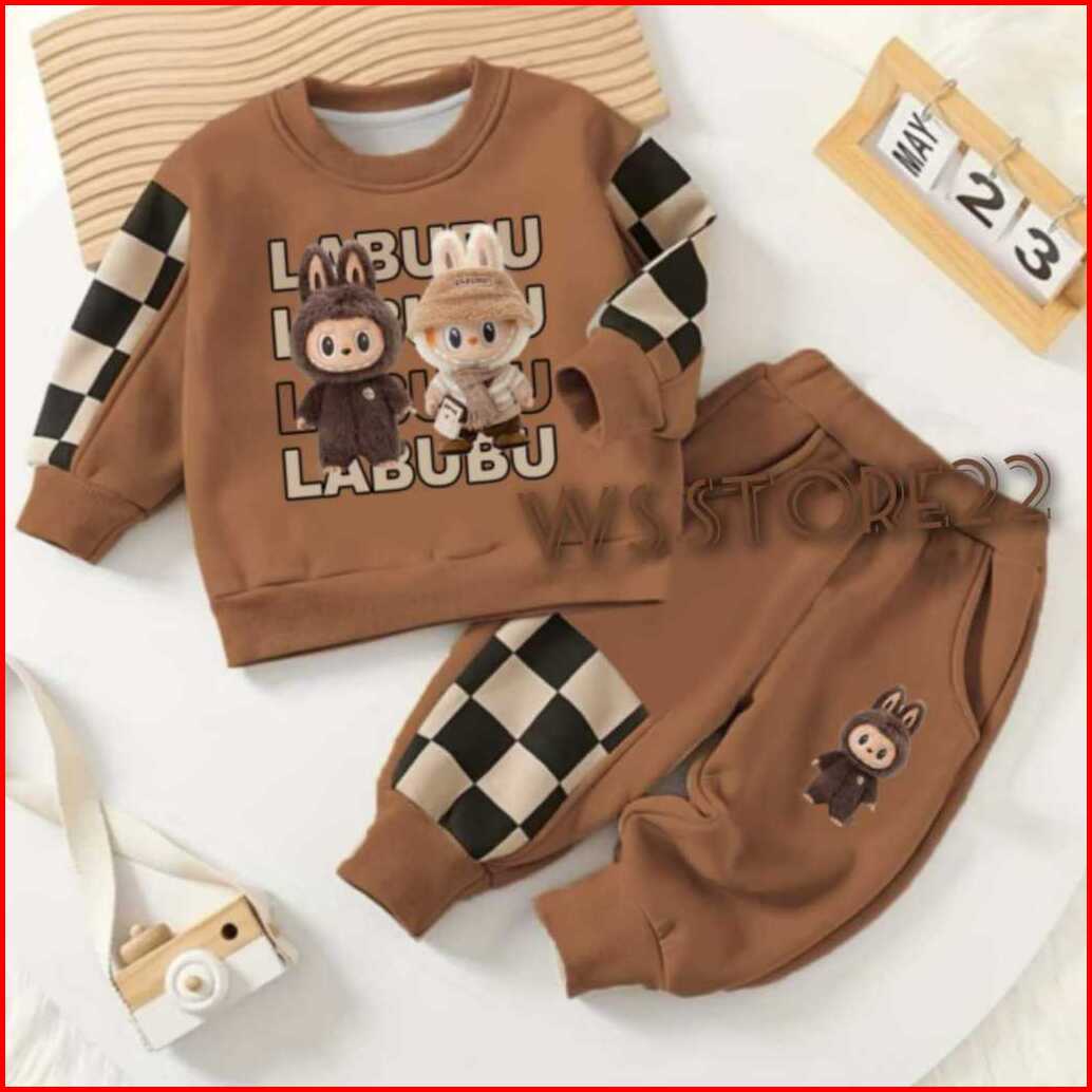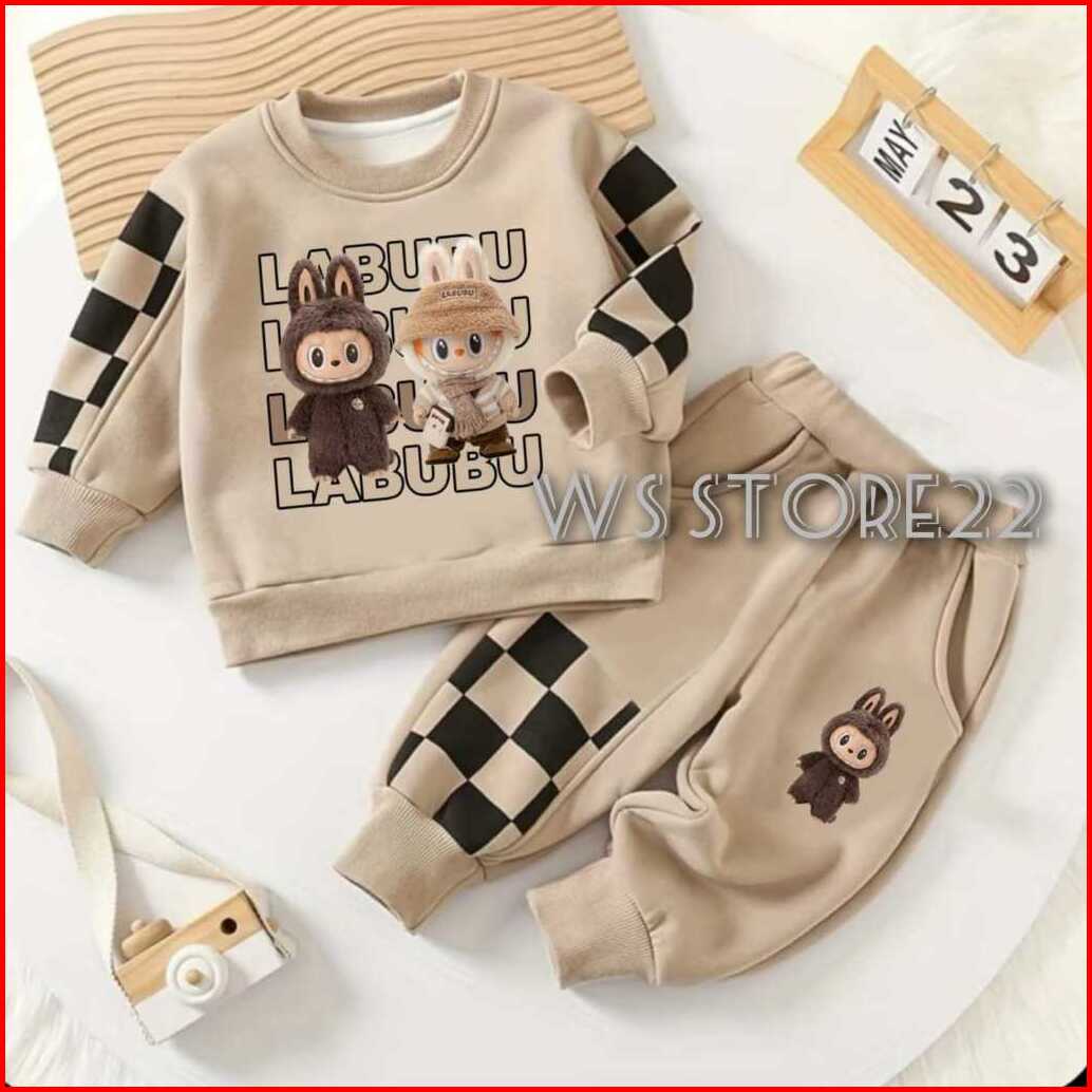 Setelan Joger Labubu Viral Anak Laki Dan Perempuan Sweater Labubu Anak Unisex 1-8 Tahun
