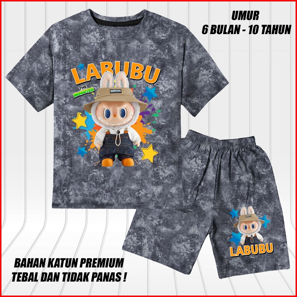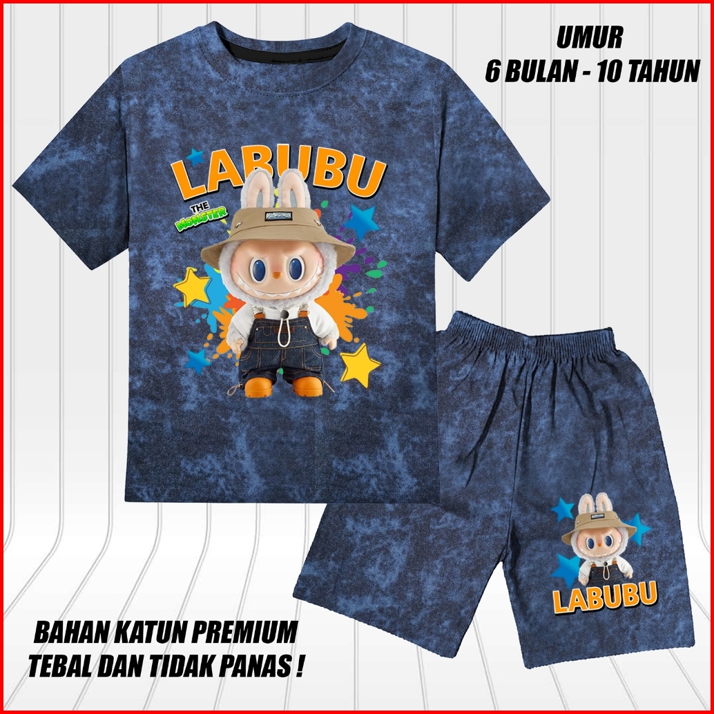 Setelan Denim Jeans Printing Lengan Pendek Anak Laki Laki Perempuan Set Baju Kaos Labubu 5 Dtf
