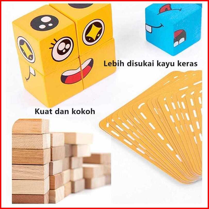 Babytoys Mainan Anak Susun Ekspresi Muka Face Changing Puzzle Cube Mainan Puzzle Anak Family Game