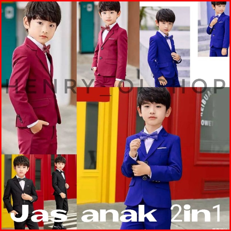 Jas Set Anak Cowok Size 3 4 5 6 7 8 9 10 Tahun 2in1 Blazer Sama Celana Warna Maroon Navy Dongker Benhur Hitam Setelan Ki