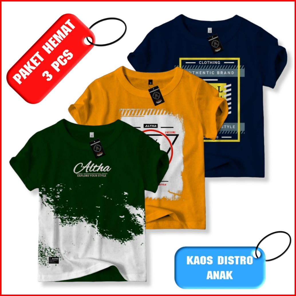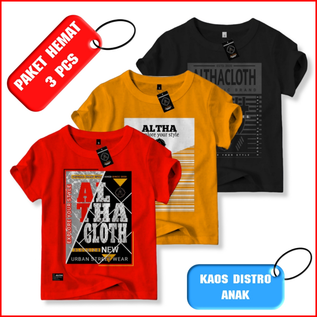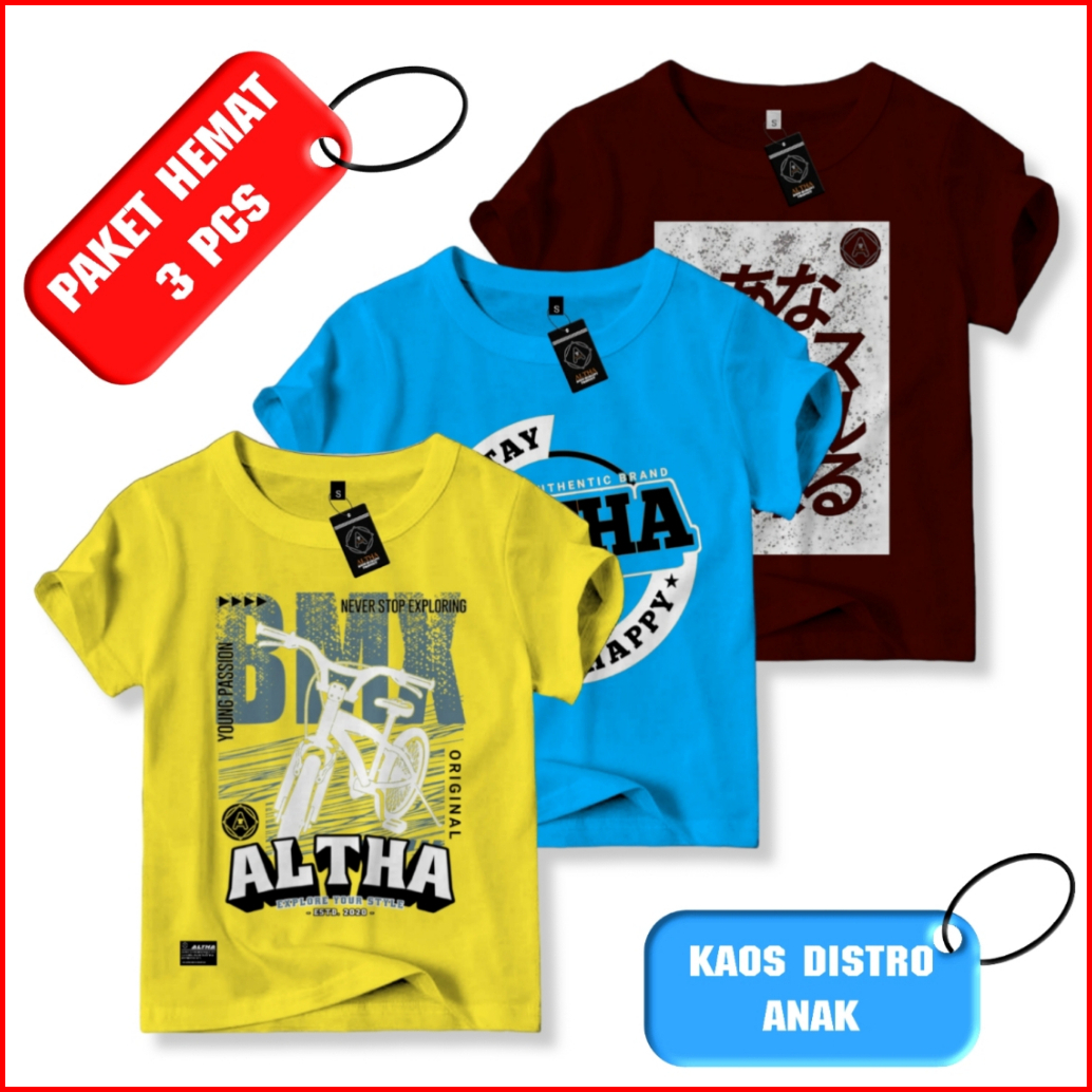 Promo Paket Hemat 3 Pcs Altha Kaos Distro Anak Laki Laki 1-12 Tahun Part 1