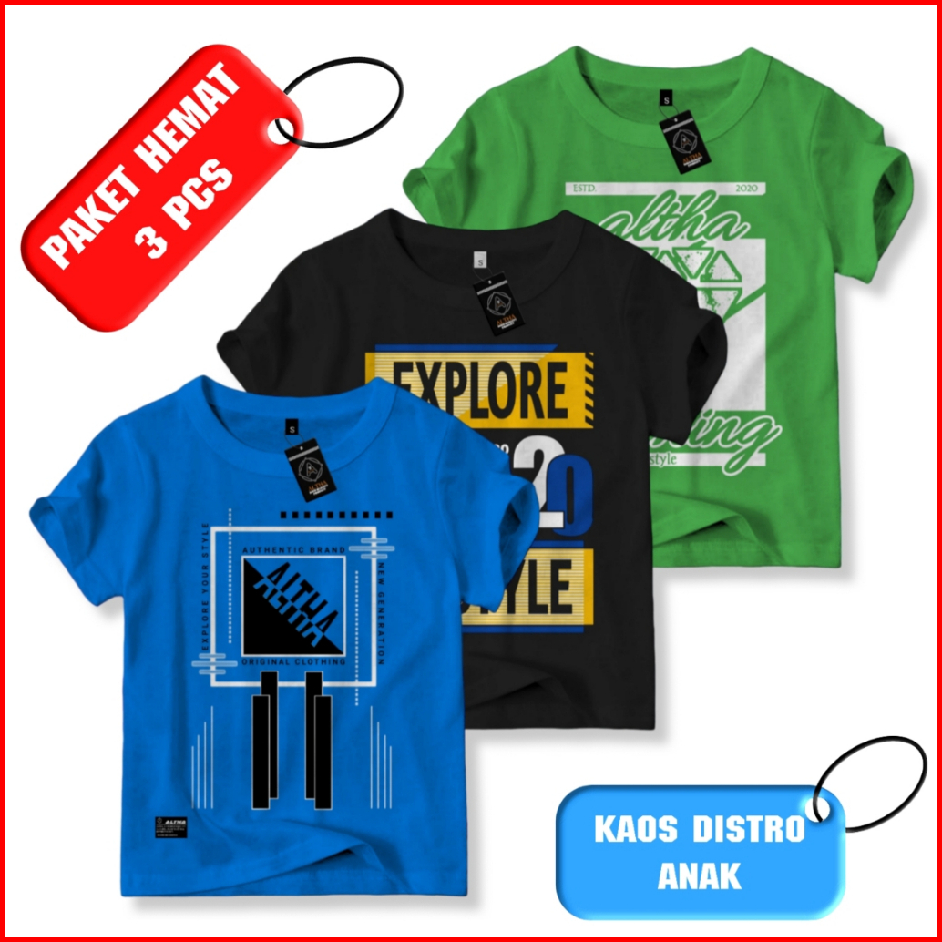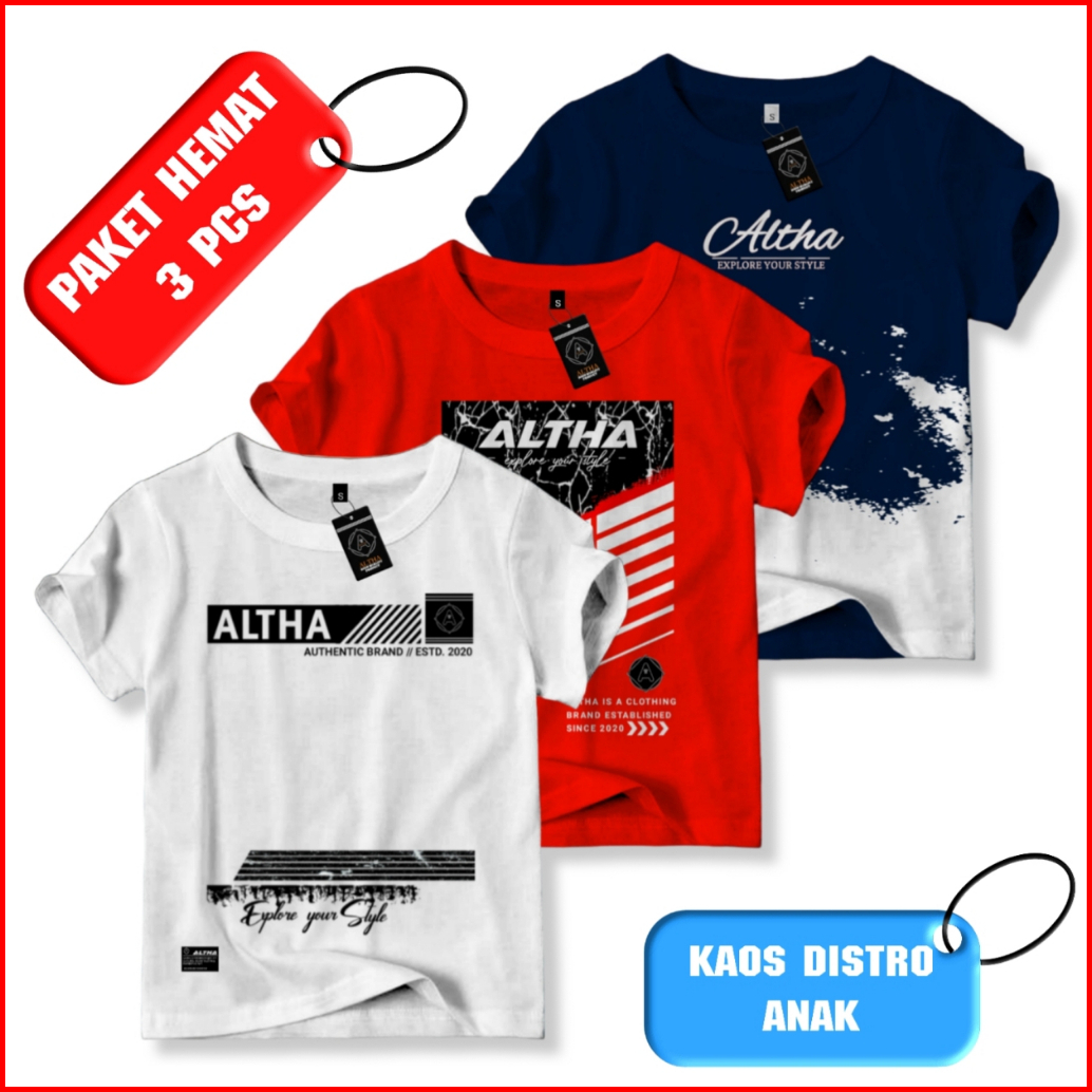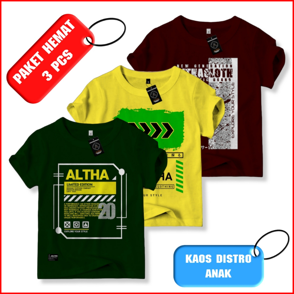 Promo Paket Hemat 3 Pcs Altha Kaos Distro Anak Laki Laki 1-12 Tahun Part 1
