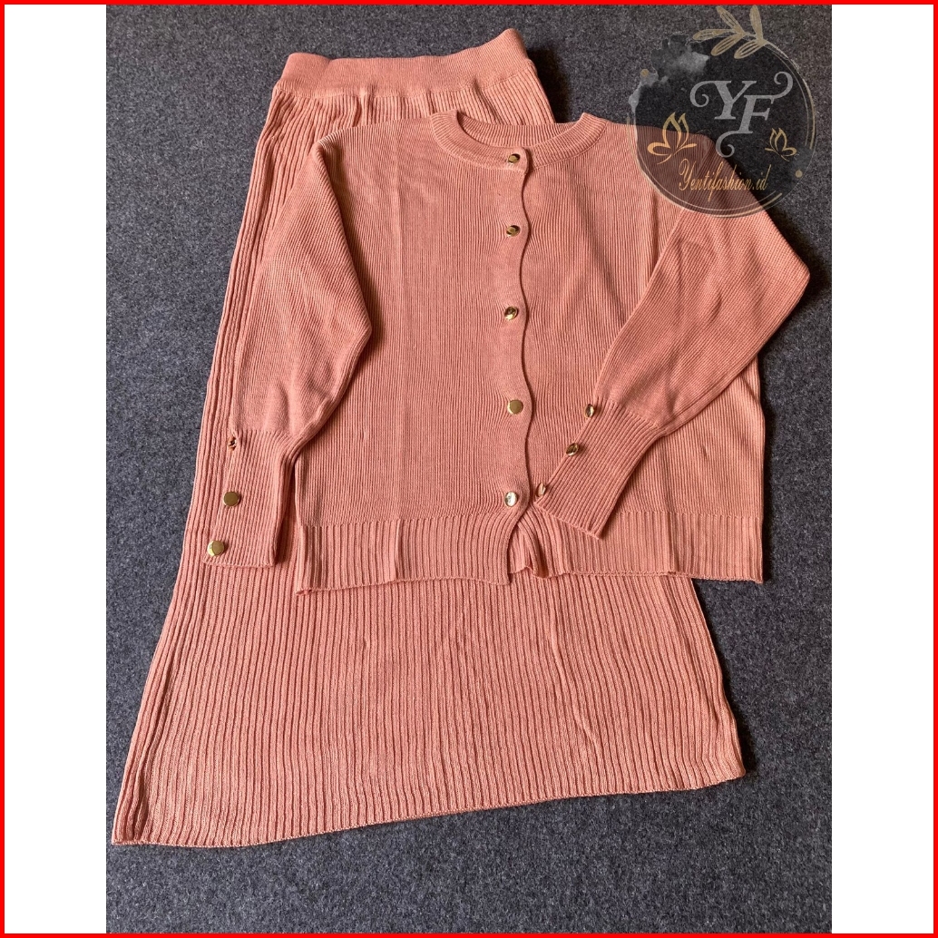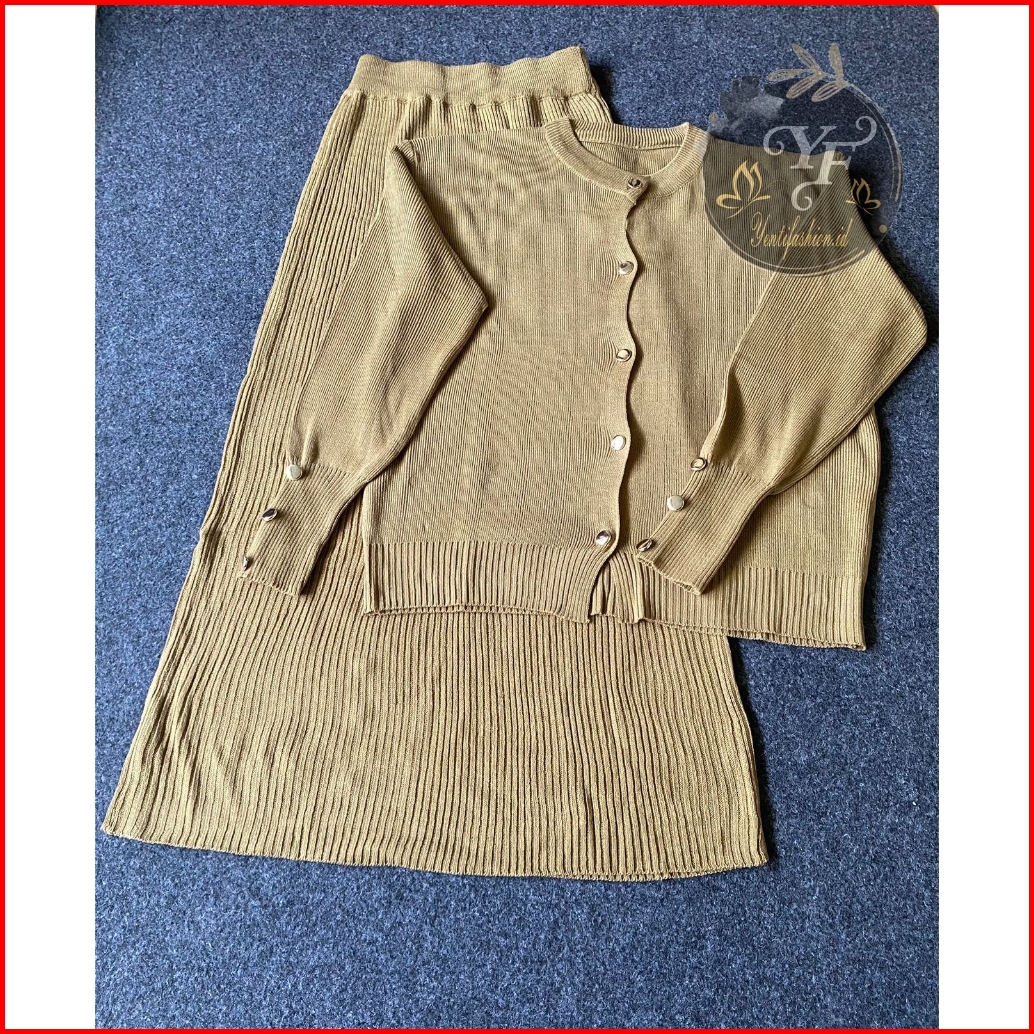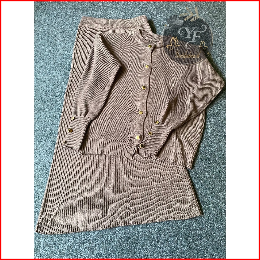Oneset Cardigan Tarla Dan Rok Span Rajut Wanita