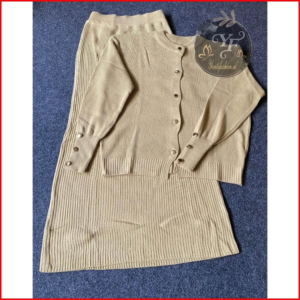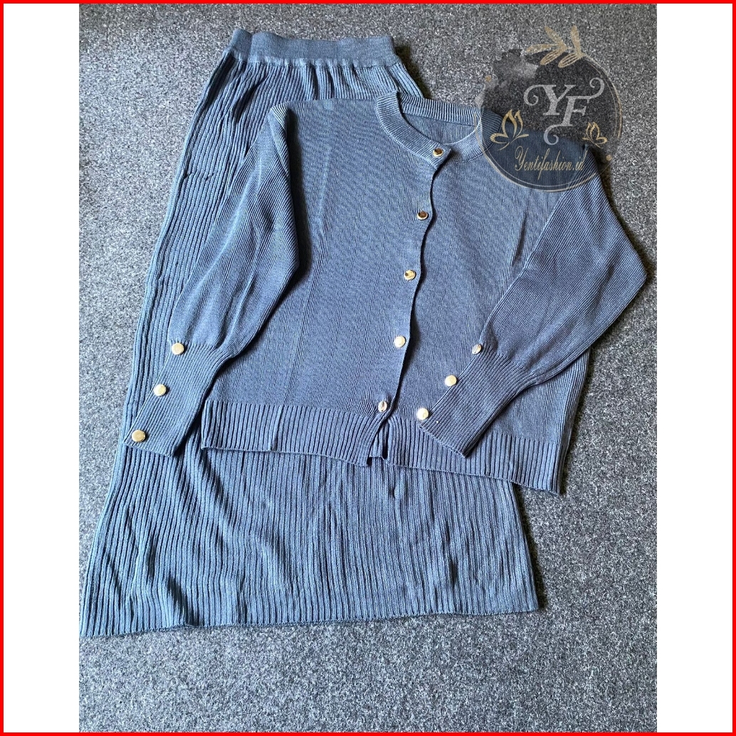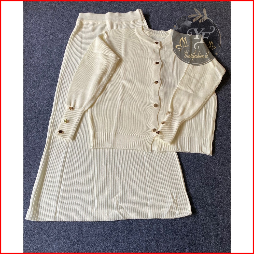 Oneset Cardigan Tarla Dan Rok Span Rajut Wanita