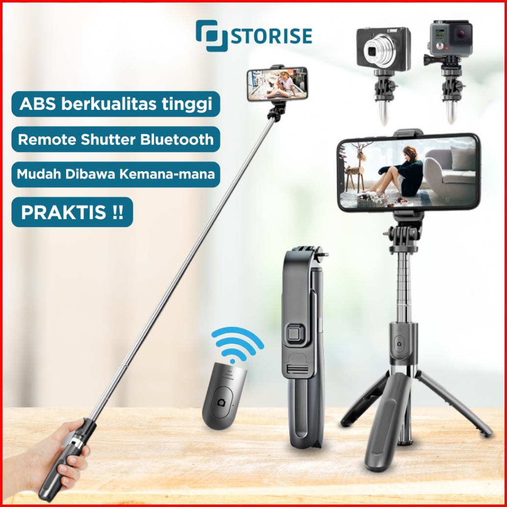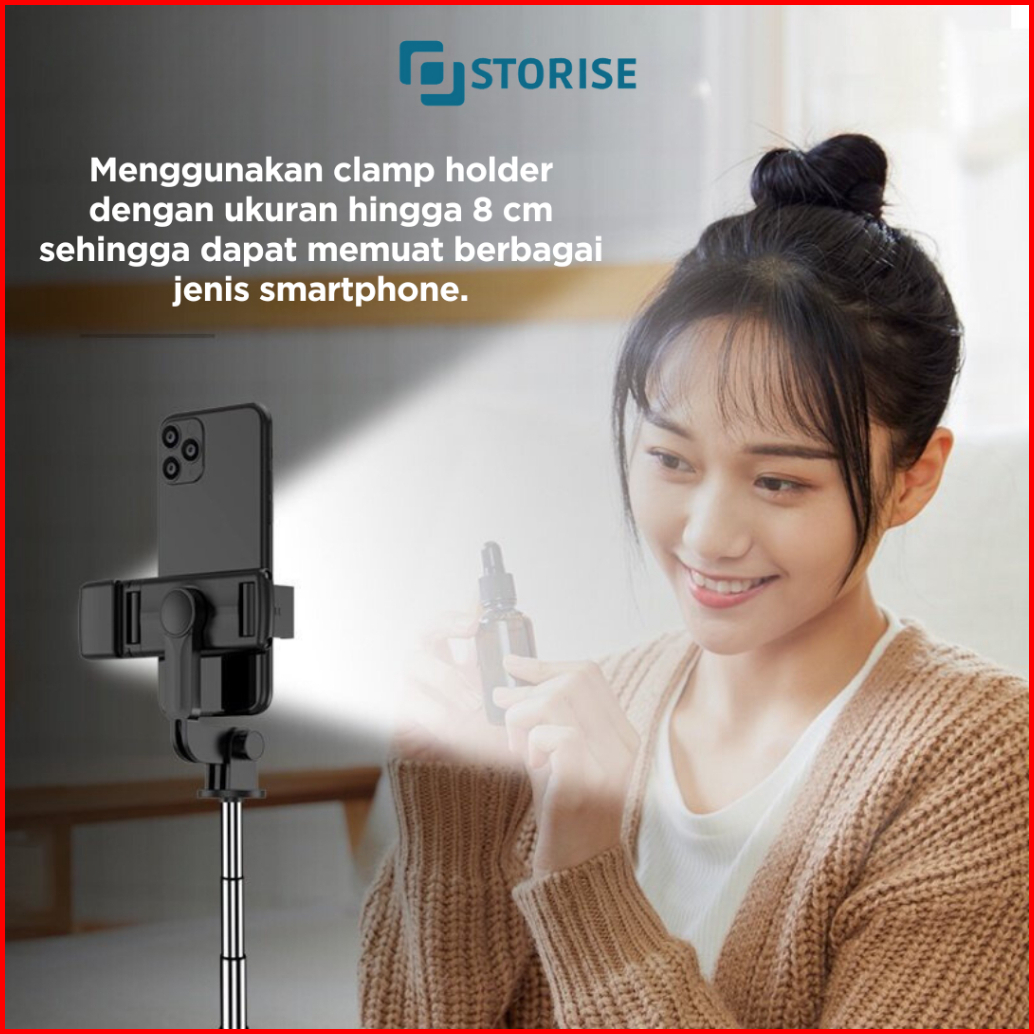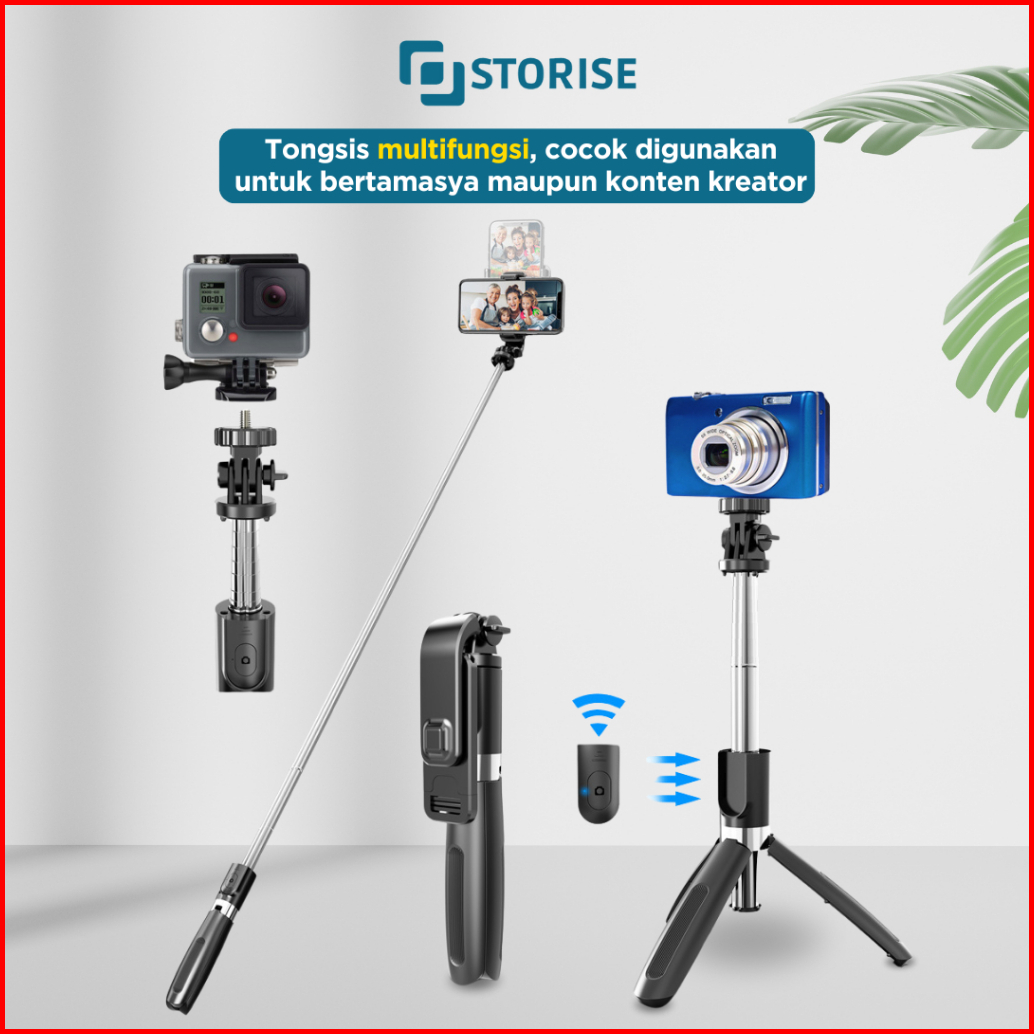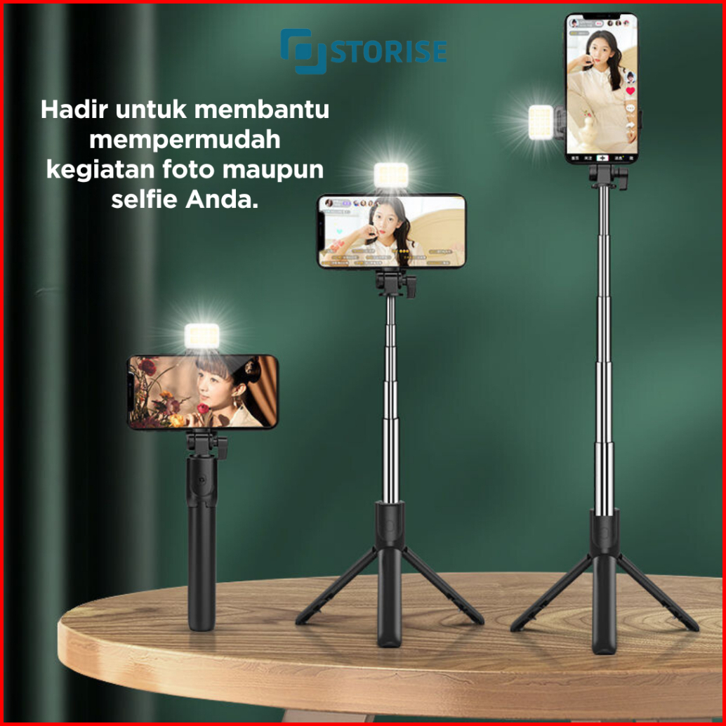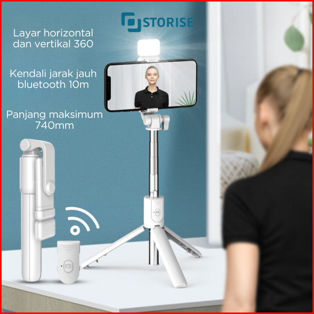 Storise Tongsis Tripod Bluetooth Lampu Led Remote Control Alat Selfie Foto Dan Video Stick Portable Flexible 360