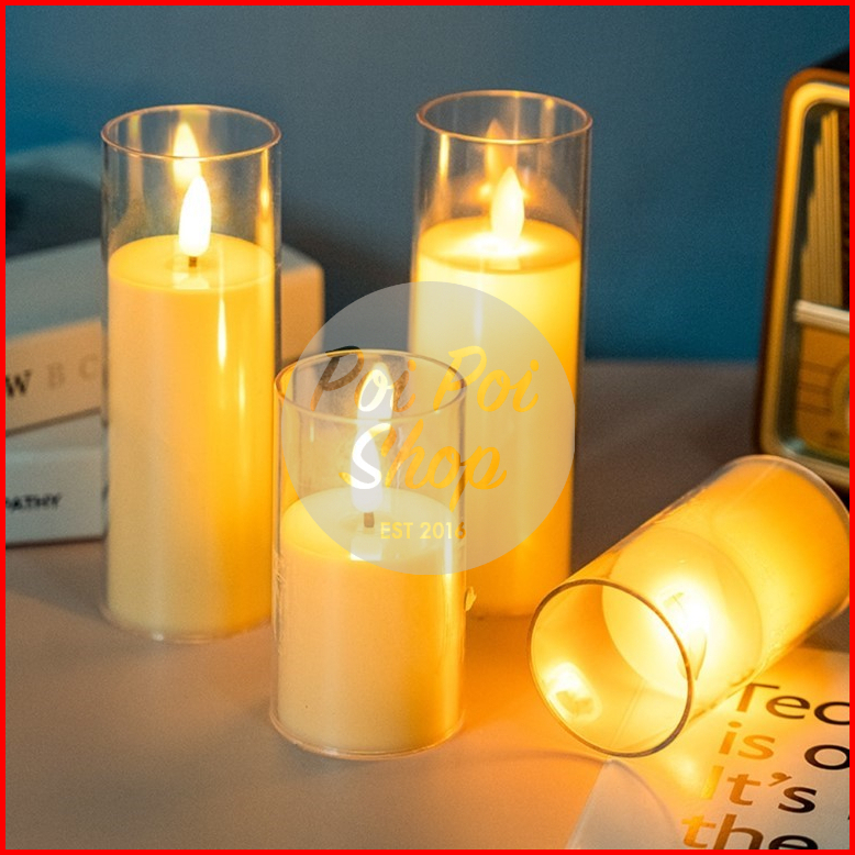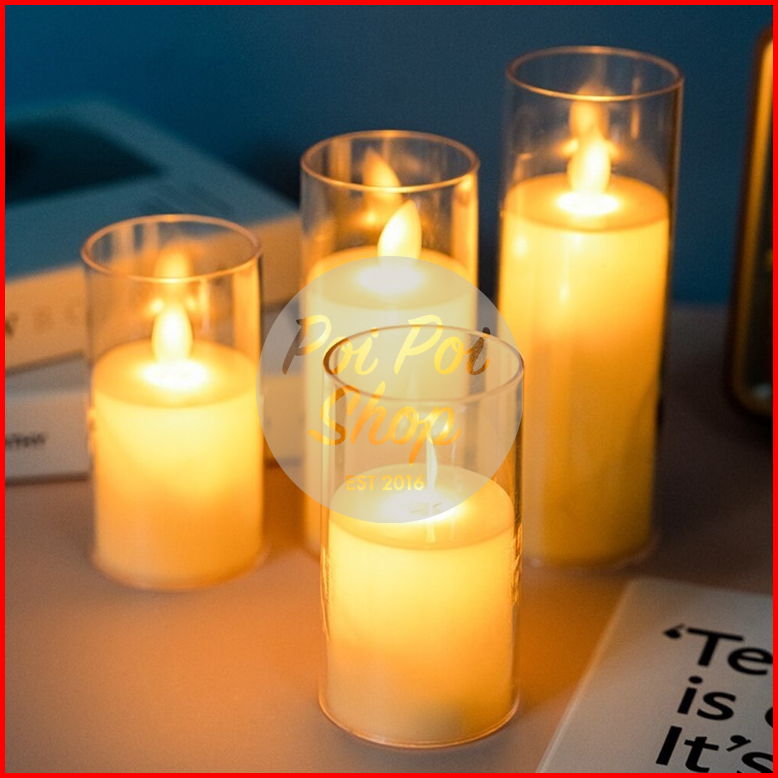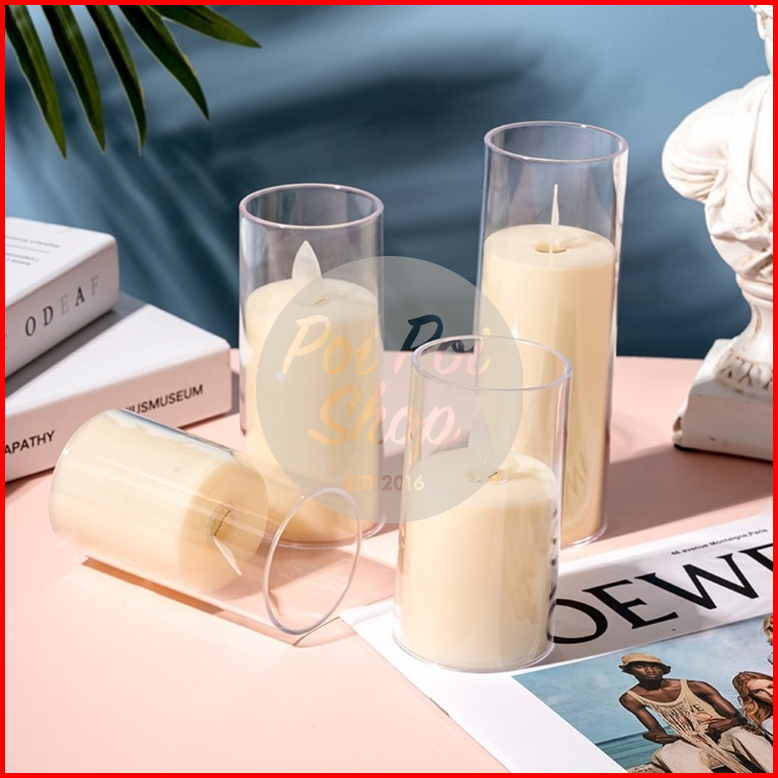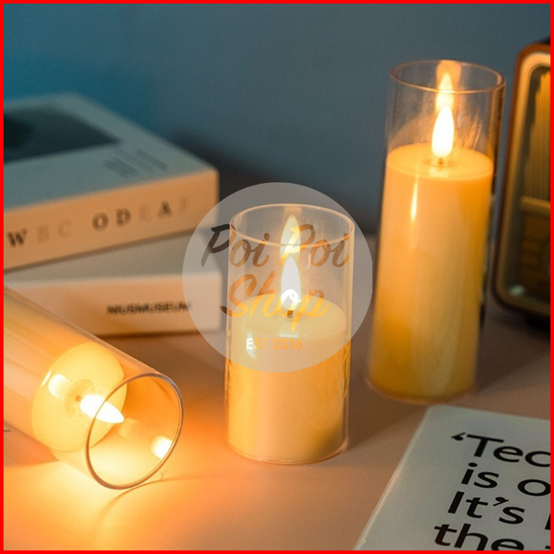 Lilin Led Premium Akrilik Aesthetic Candle Smokeless Natal Lampu Tidur Hiasan Kamar Besar Baterai Elektrik Api Bergoyang