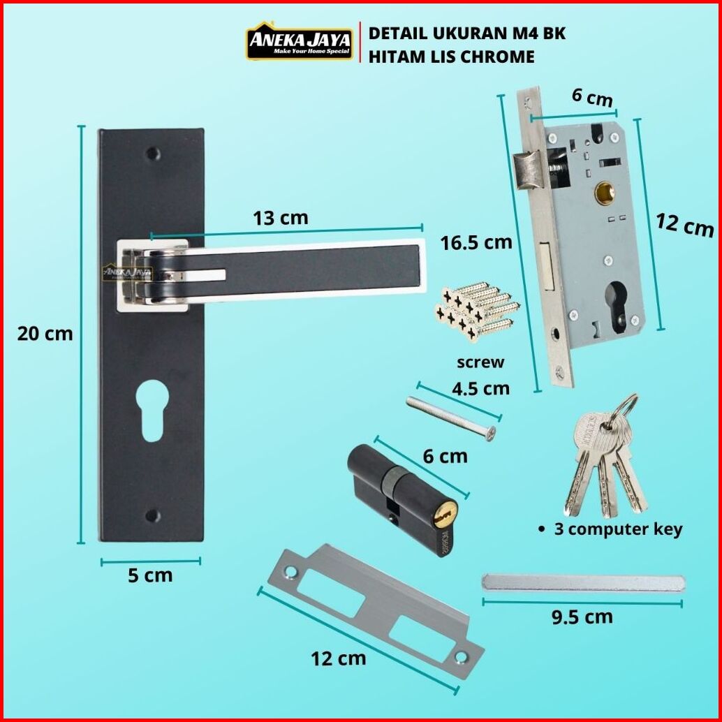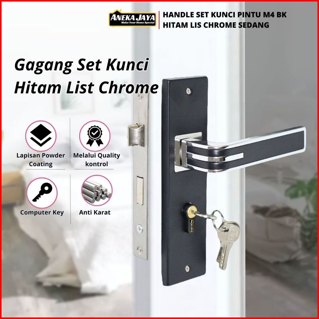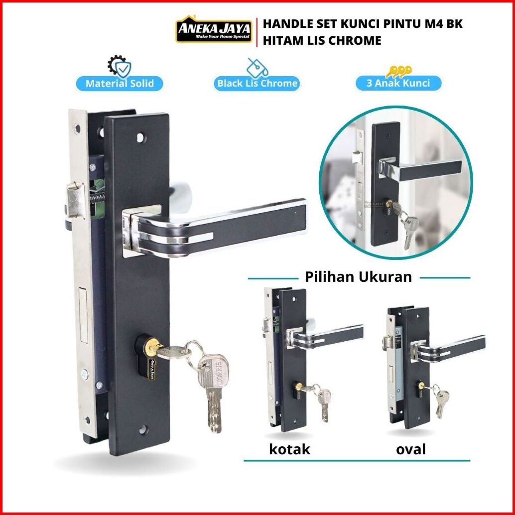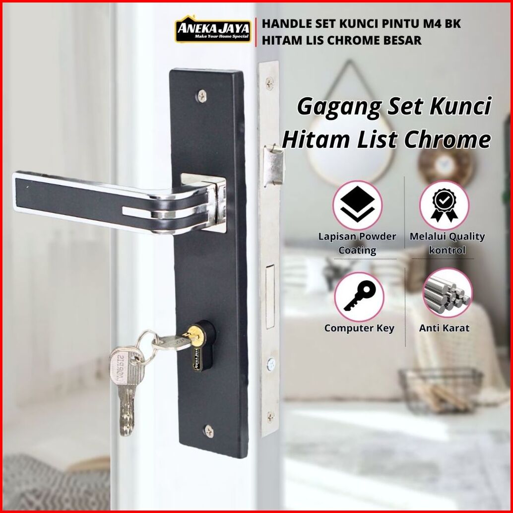 Kunci Pintu Rumah Hitam Black List Chrome Tipe Morris Premium Handle Komplit Ukuran Tanggung Besar