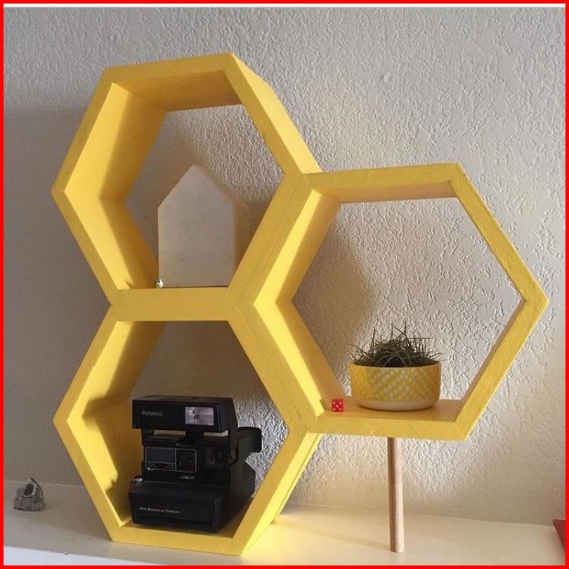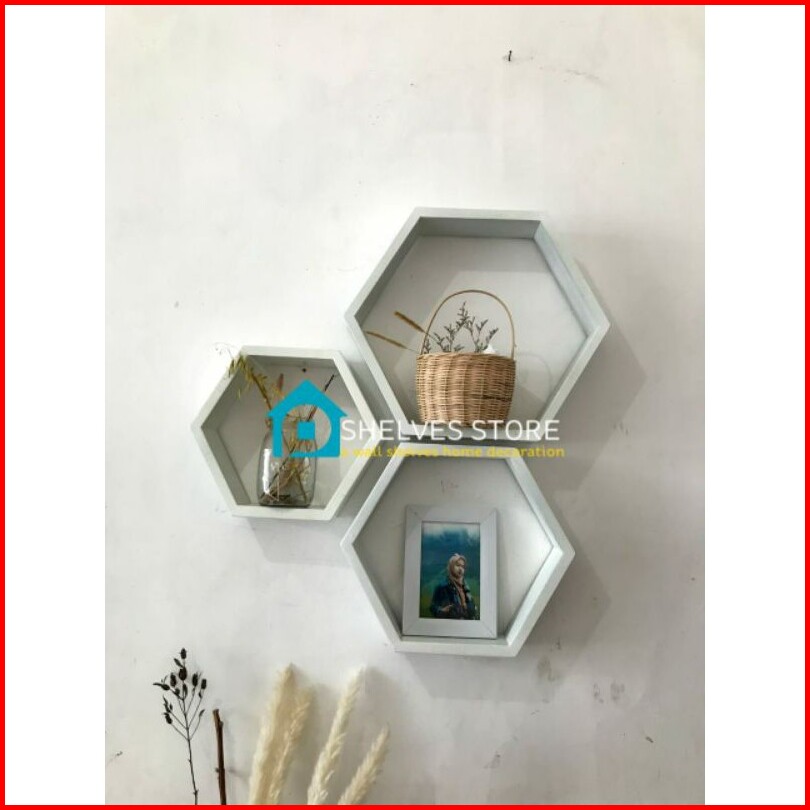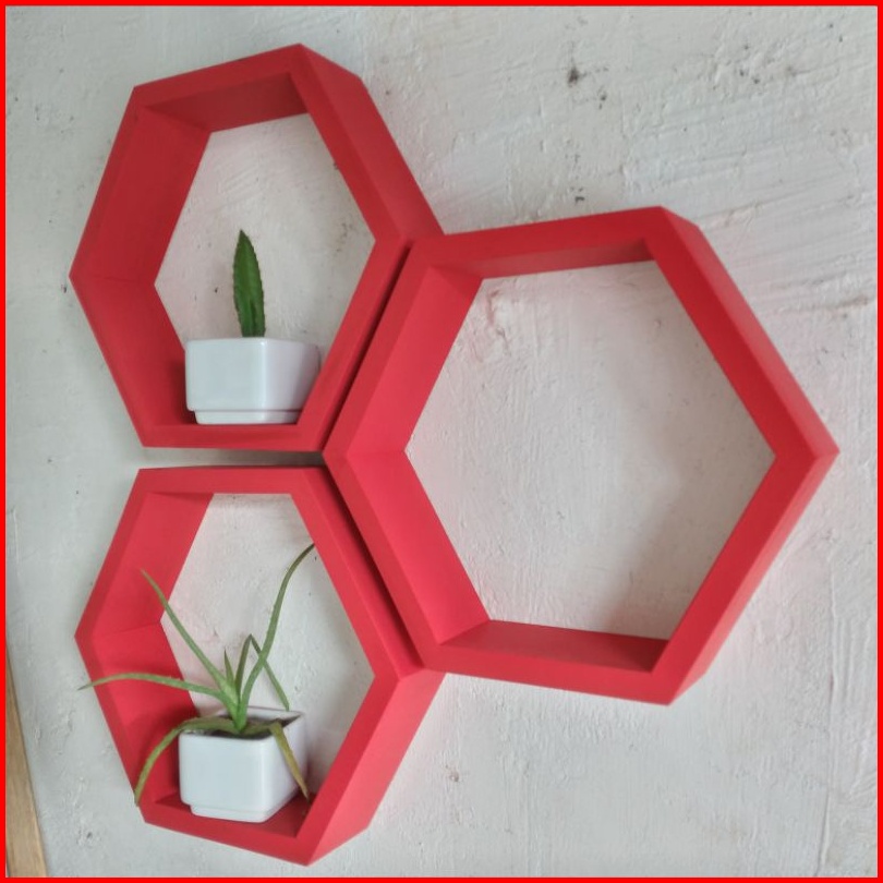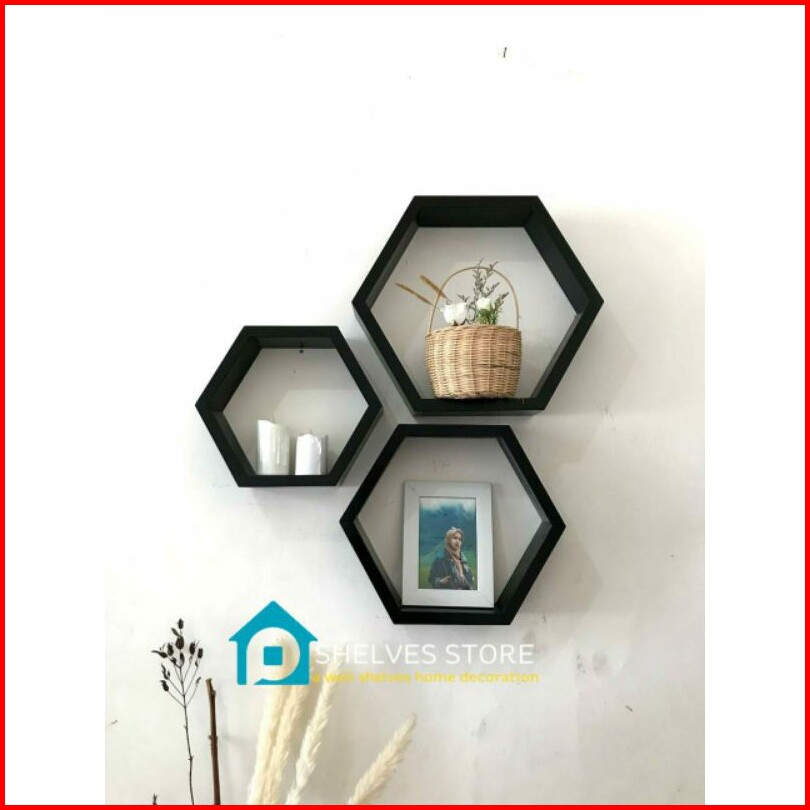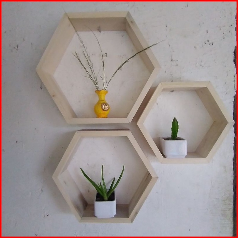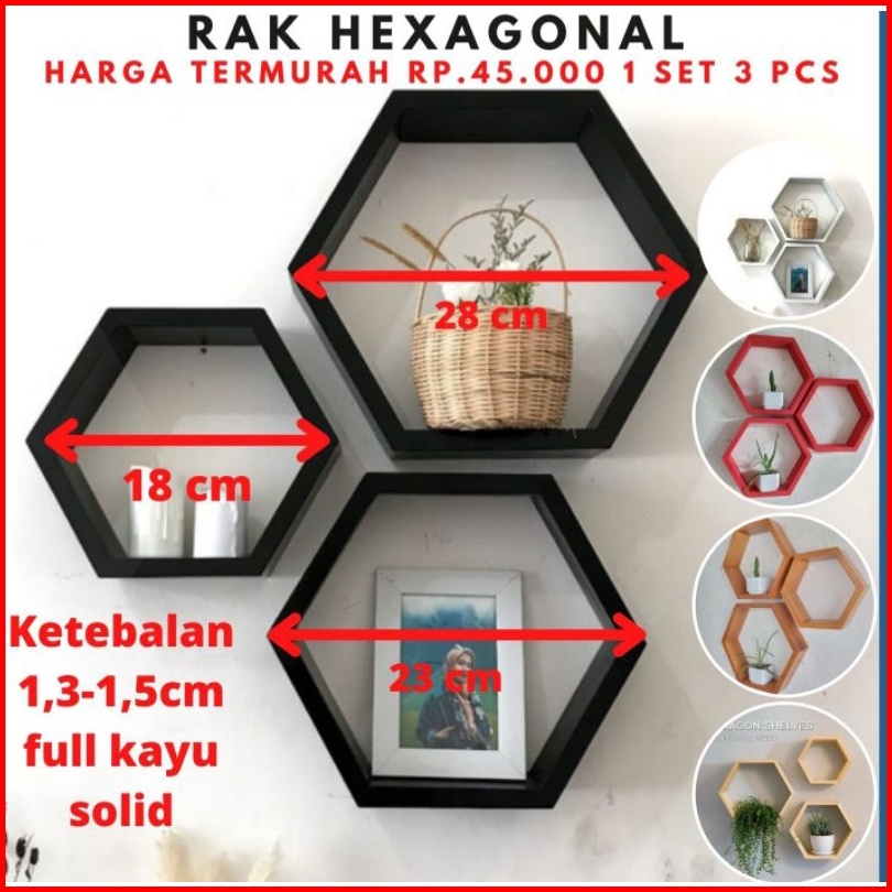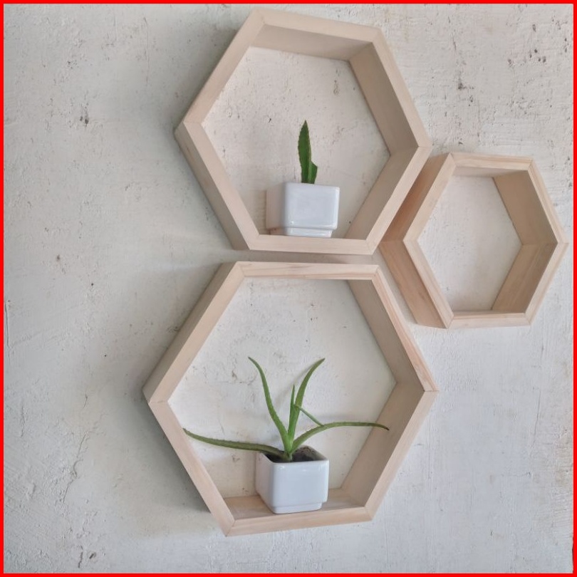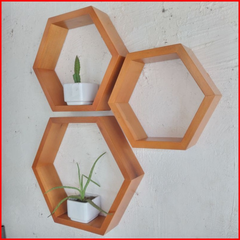 Shelv Rak Dinding Hexagonal Segi Enam Kayu Tempel Dinding Minimalist 1 Set 3 Pcs D 18 D 23 D 28