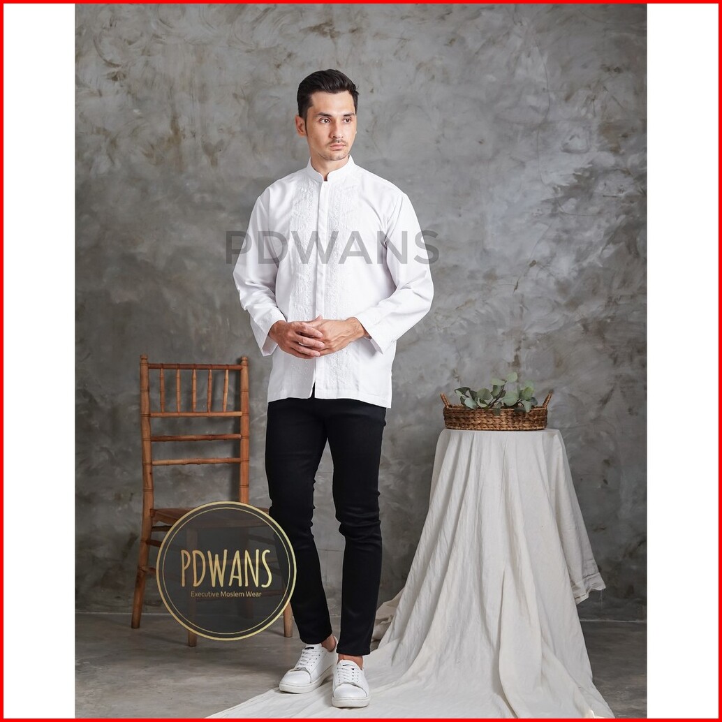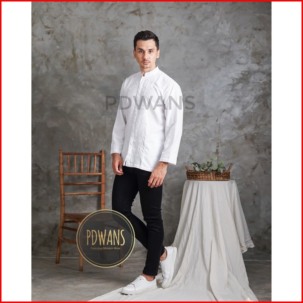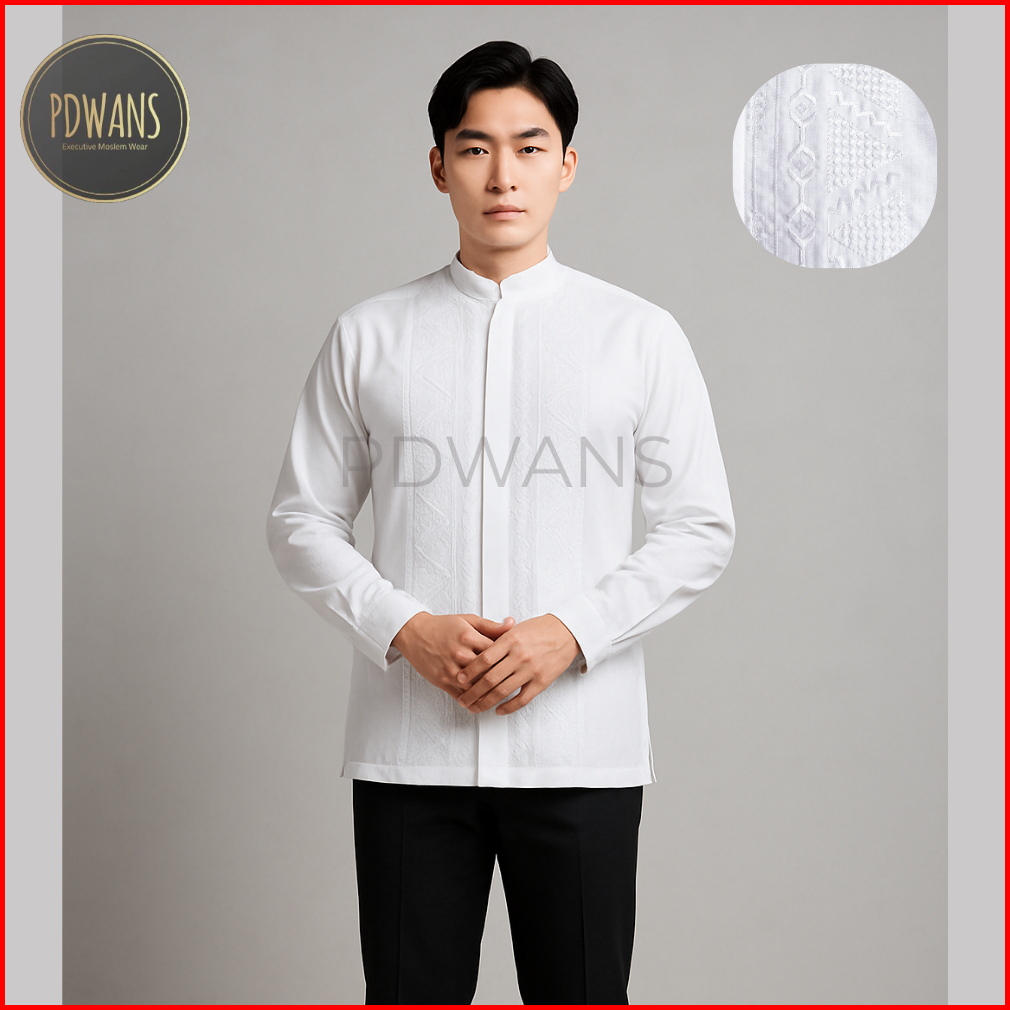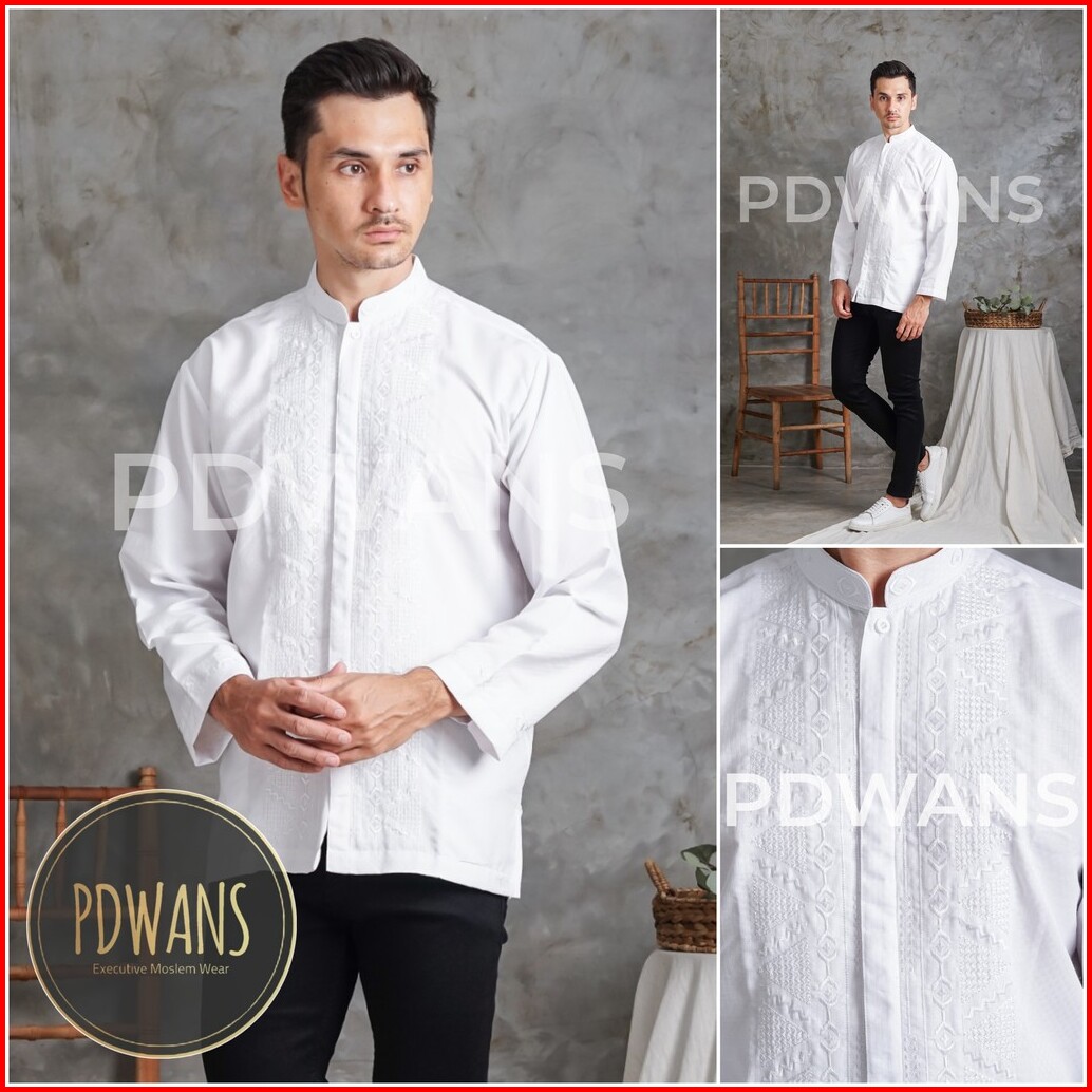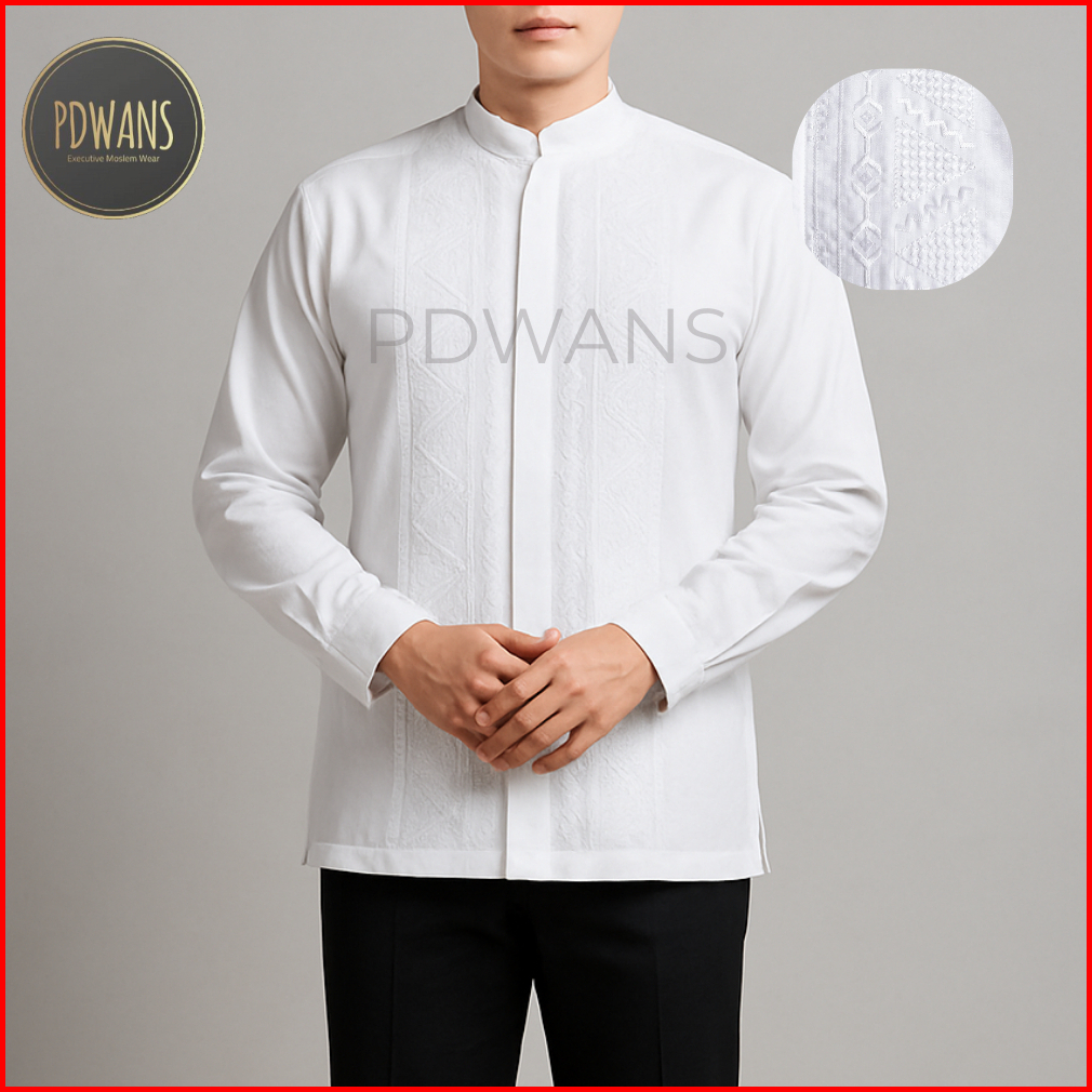 Pdwans Baju Koko Poli Katun Lengan Panjang Putih Bordir Senada Rdpjg04