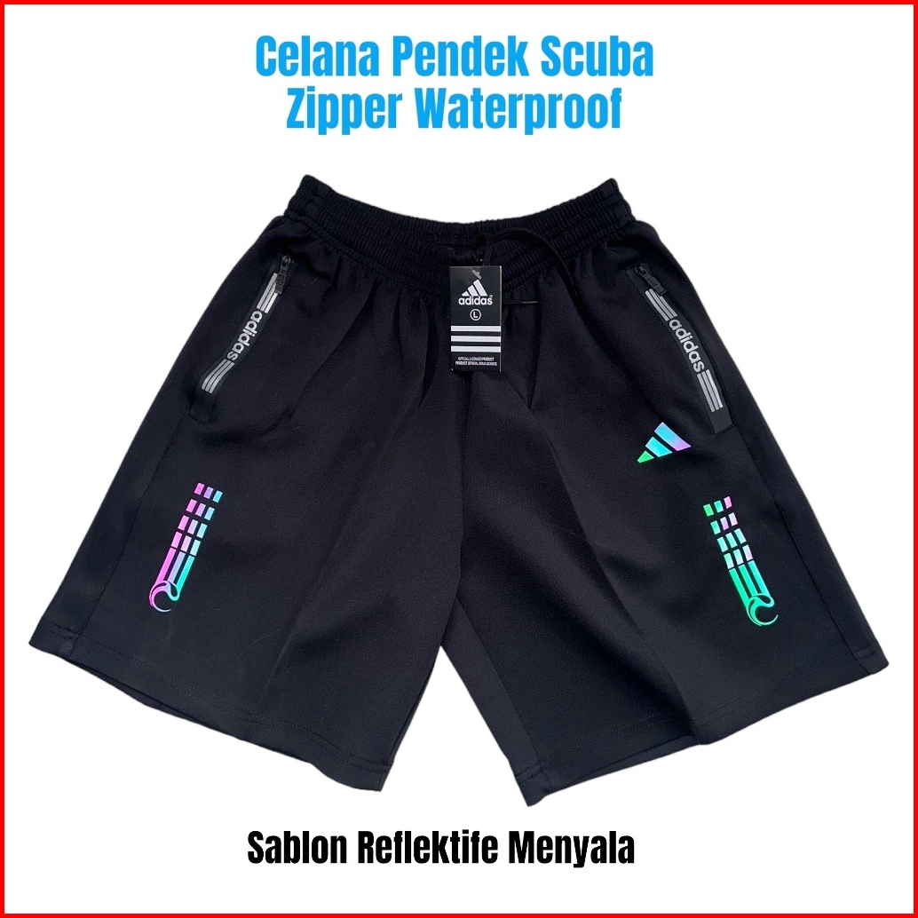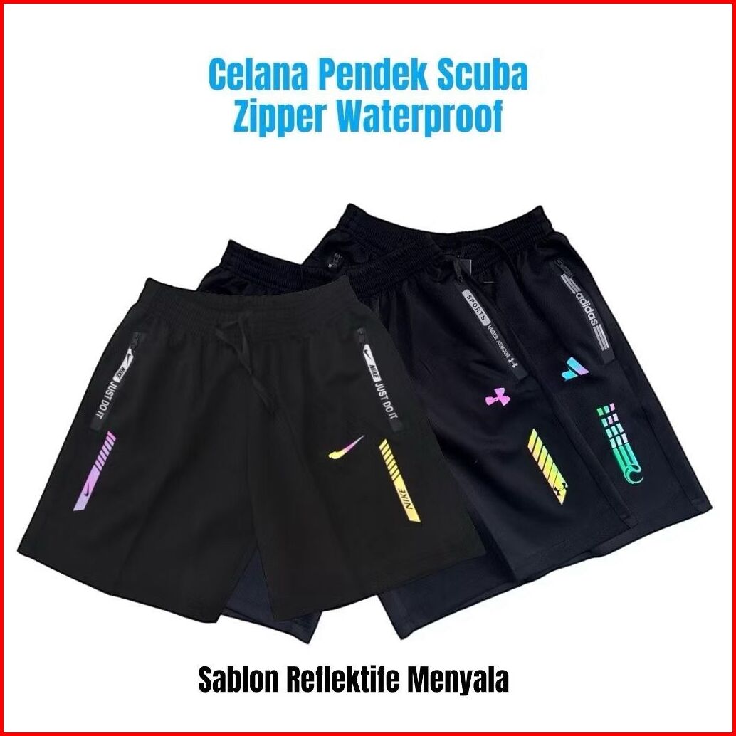 Celana Pendek Scuba Olahraga Saku Resleting Running Gym Jogging