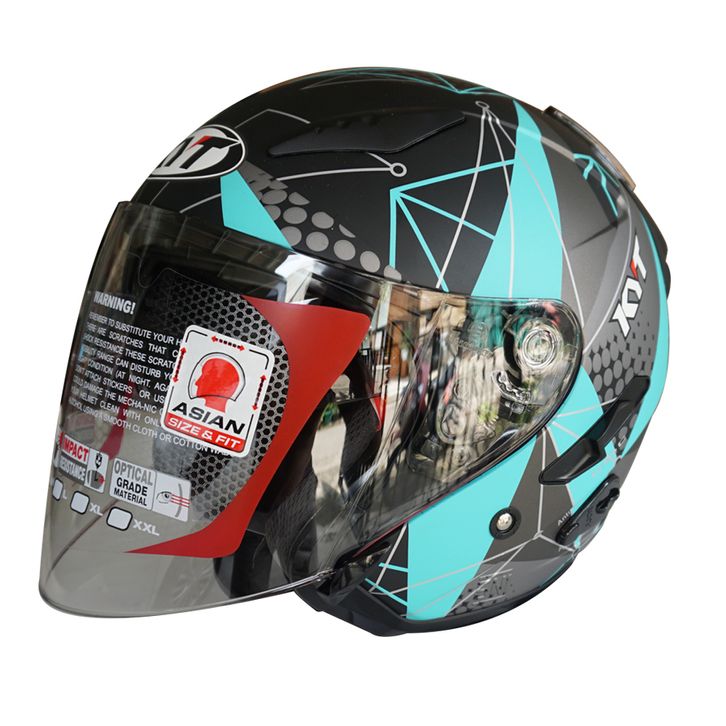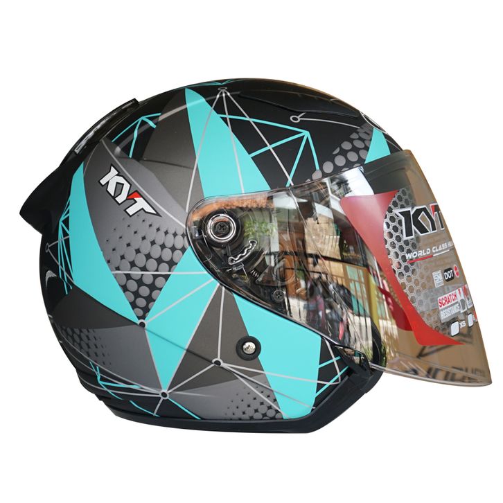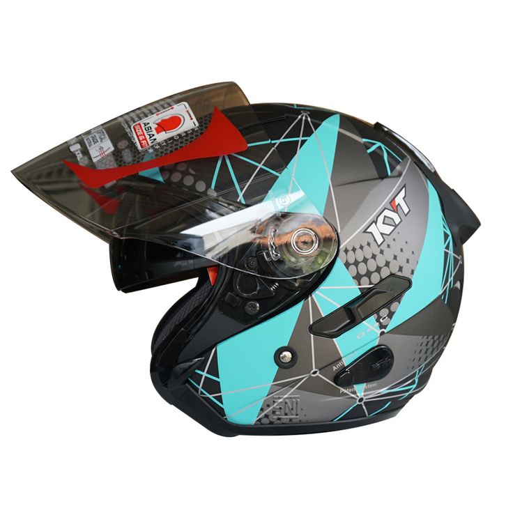 HELM KYT ORIGINAL / KYT GALAXY FLAT R /HELM KYT MOTIF MATRIX BLACK DOFF AQUA / HELM SNI