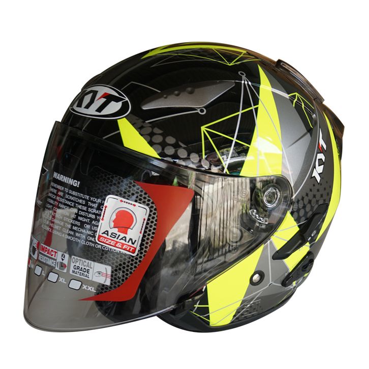 HELM KYT ORIGINAL / KYT GALAXY FLAT R /HELM KYT MOTIF MATRIX BLACK YELLOW FLUO/ HELM SNI
