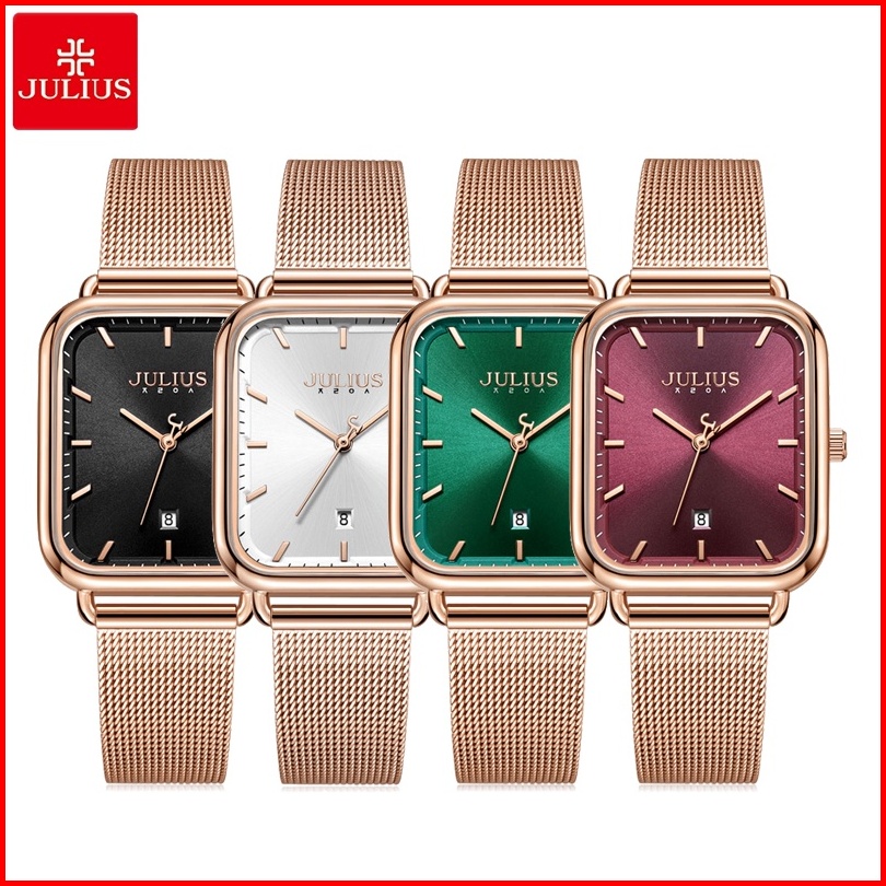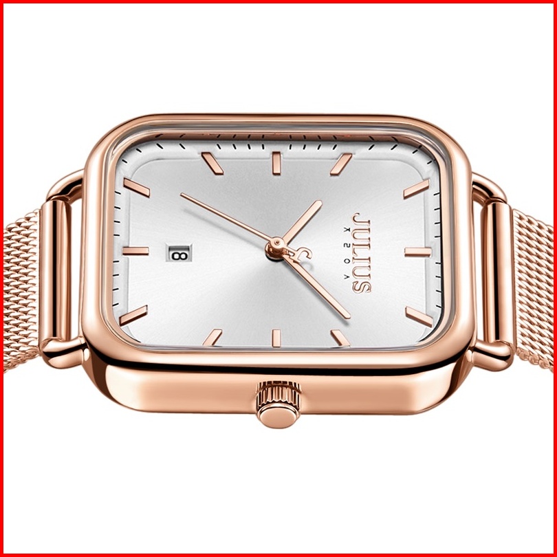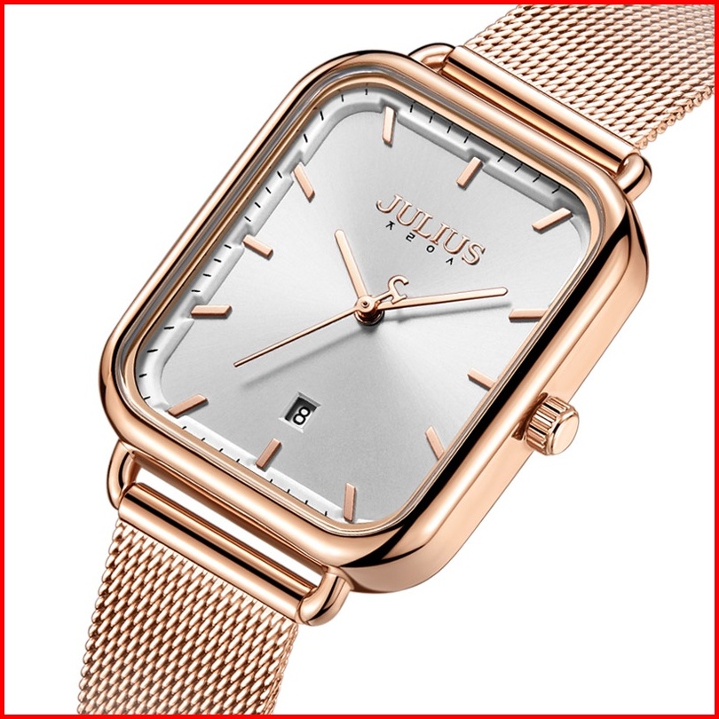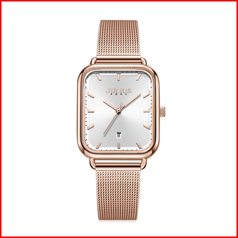 Julius New Elegant And Intellectual White Square Watch Simple Calendar Waterproof Quartz Women S Watch Ja-1297