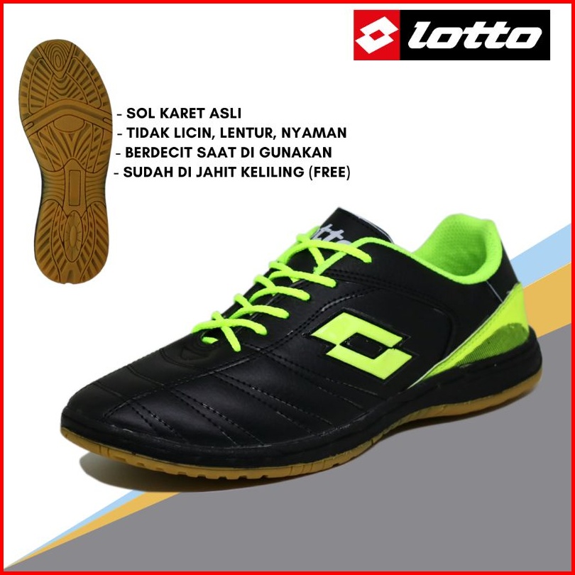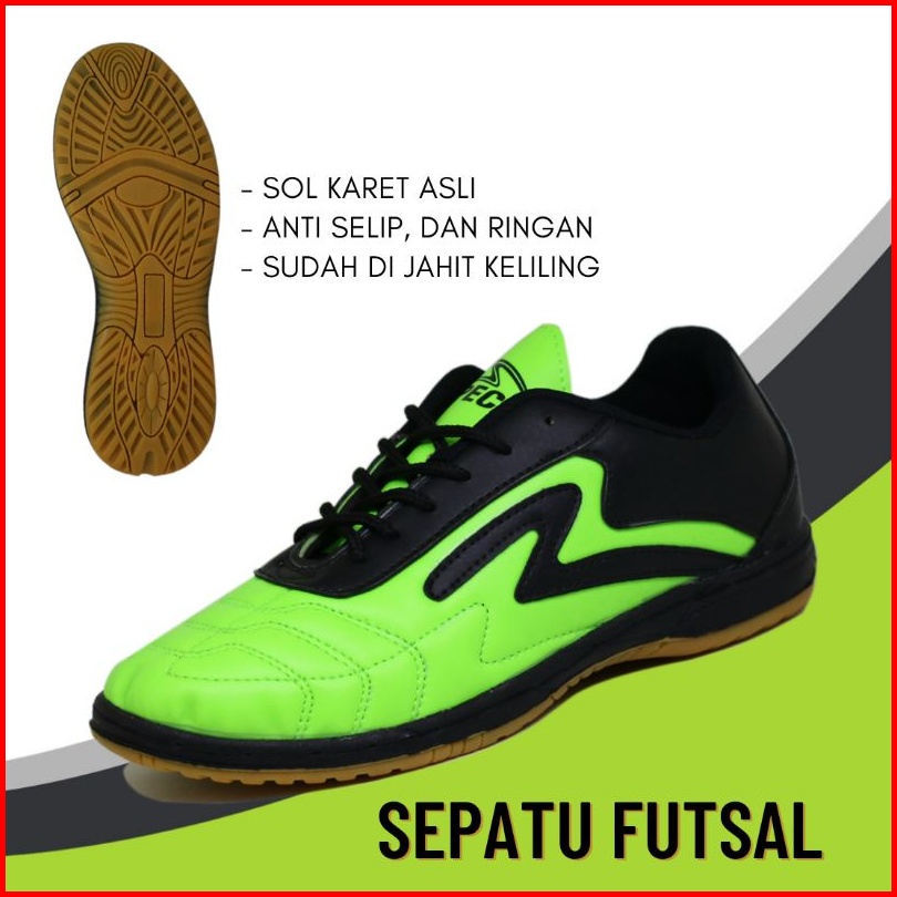 Ukuran 38-45 Sepatu Futsal Free Jahit Keliling Jahitan Muter Spc Pria Hitam Hijau Stabilo Lari