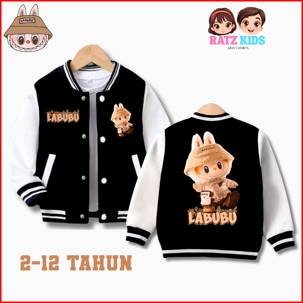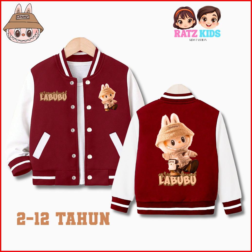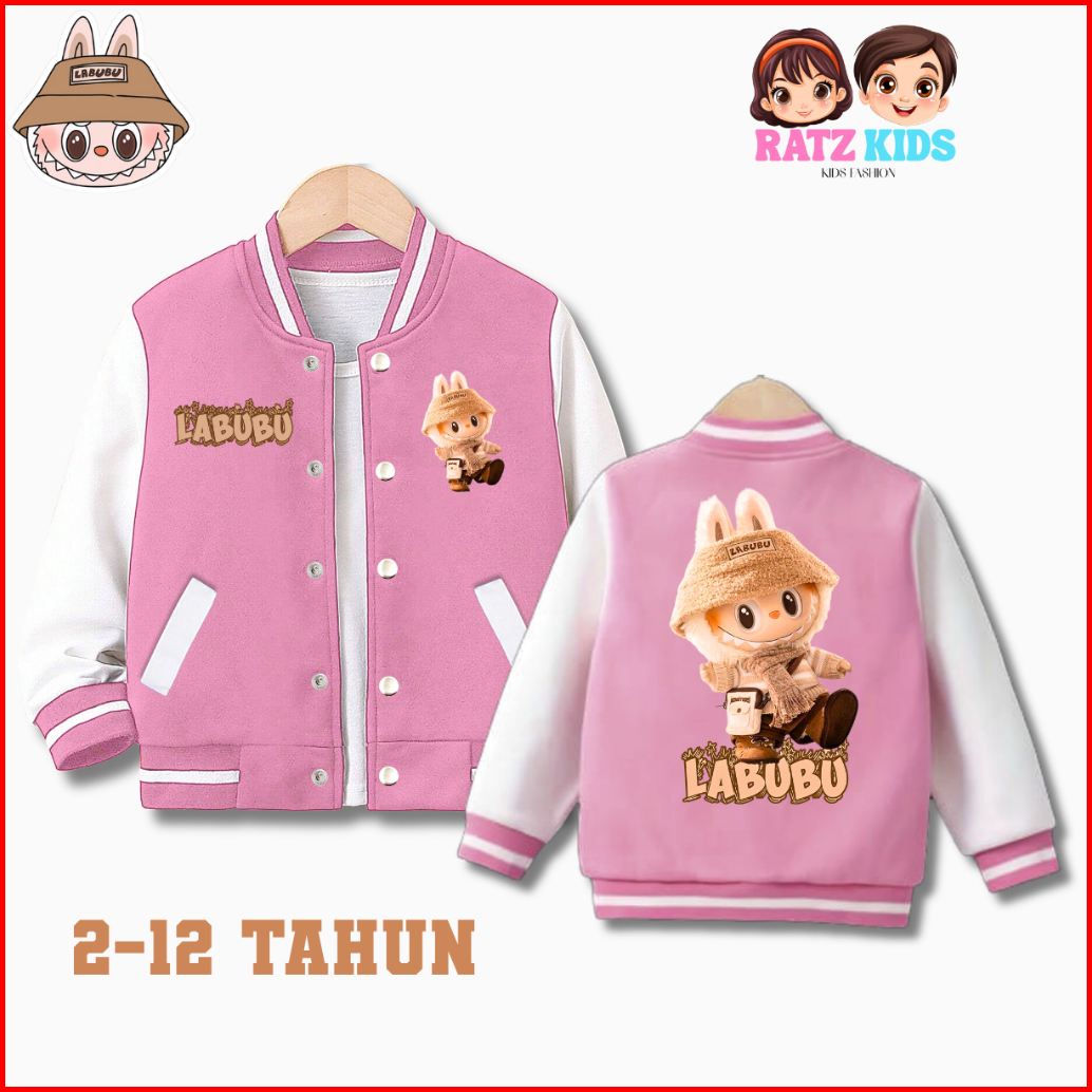 Jaket Baseball Anak Model Labubu Untuk Anak Laki-laki Perempuan Usia 2-12 Tahun Unisex
