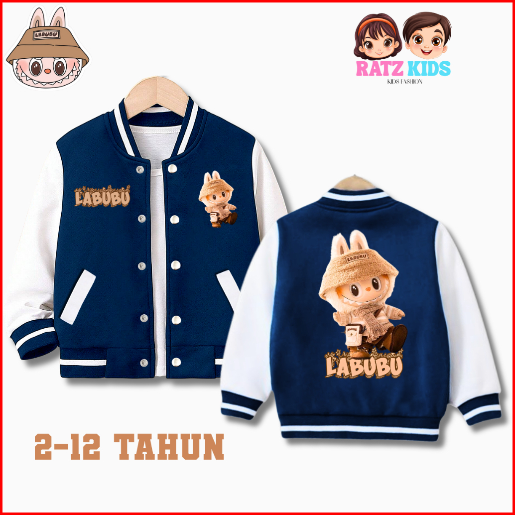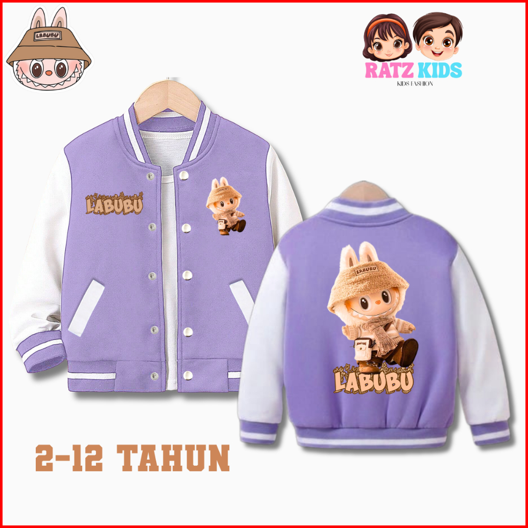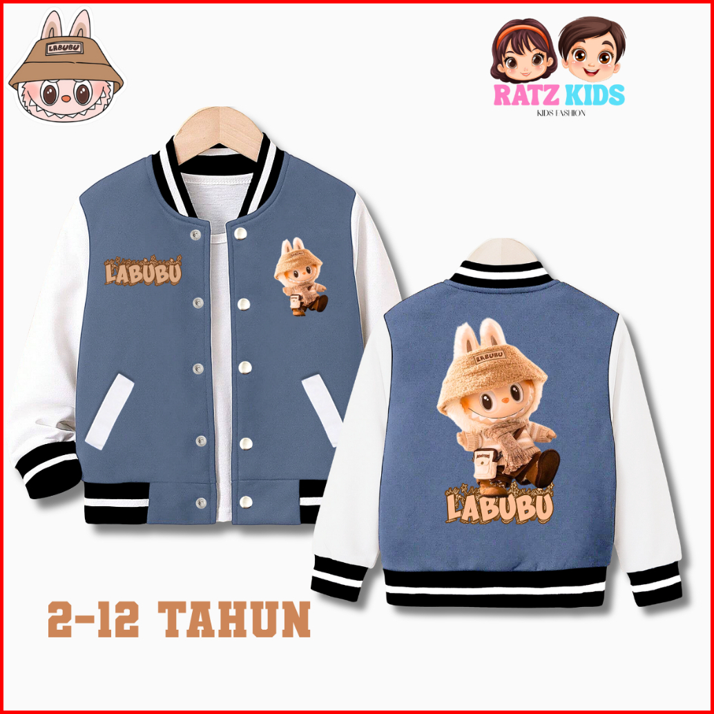 Jaket Baseball Anak Model Labubu Untuk Anak Laki-laki Perempuan Usia 2-12 Tahun Unisex