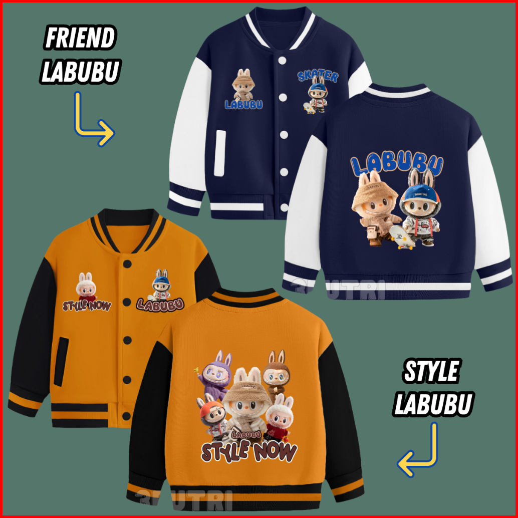Jaket Labubu Anak Laki Laki Perempuan Usia 2-13 Tahun Jacket Baseball Anak Cowok Keren Viral Terbaru